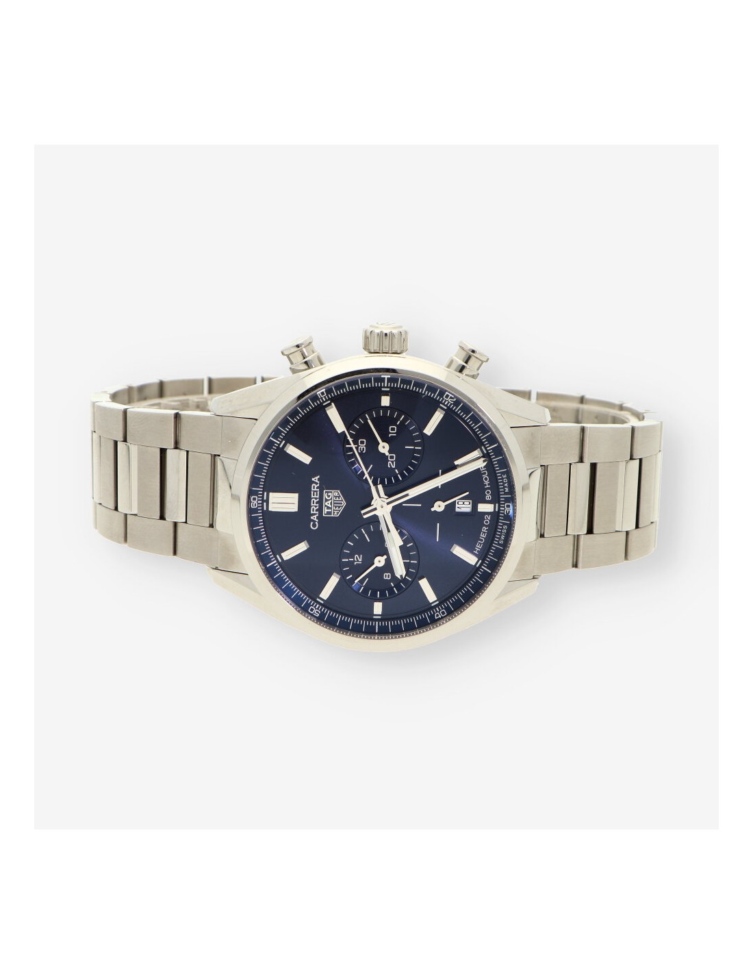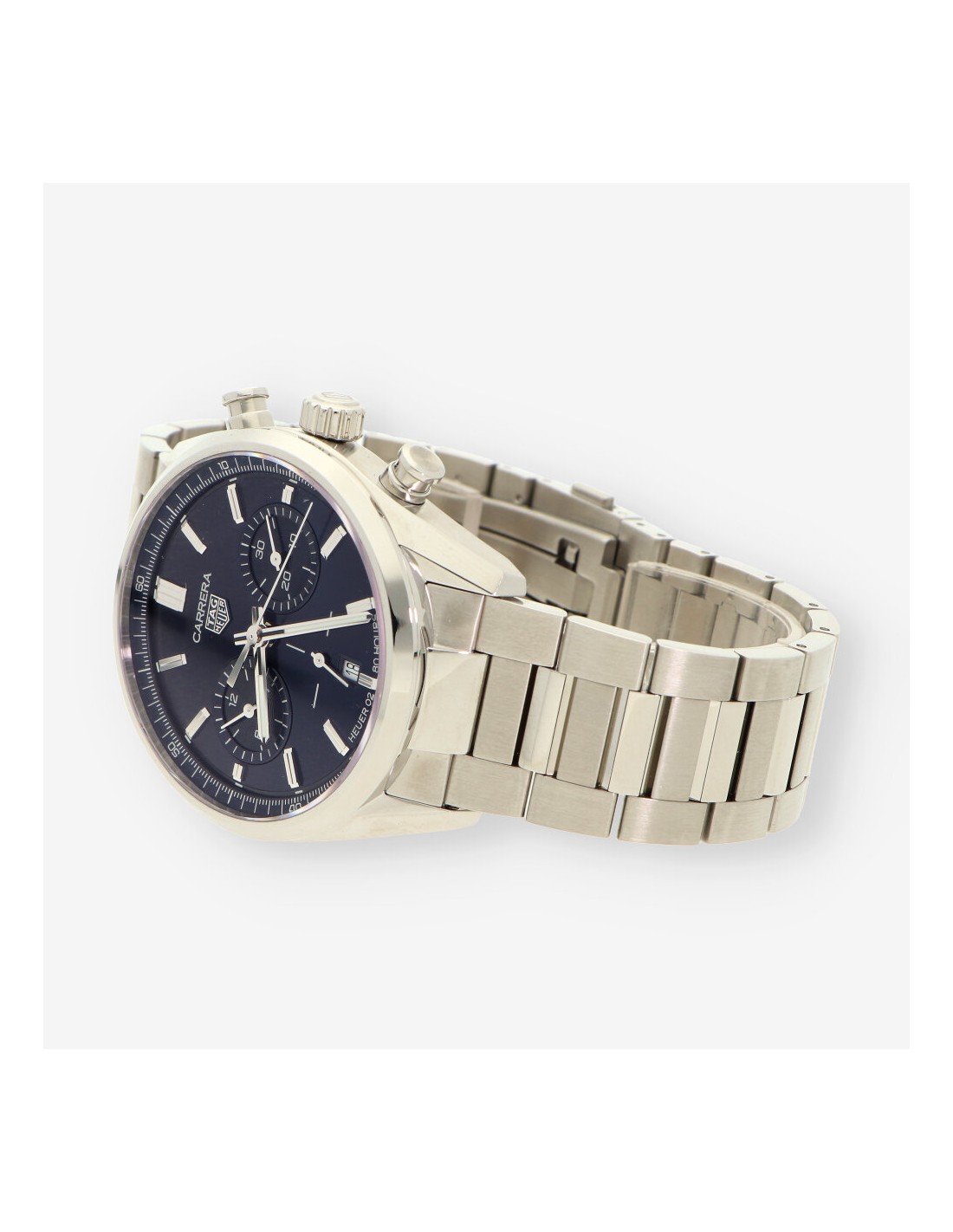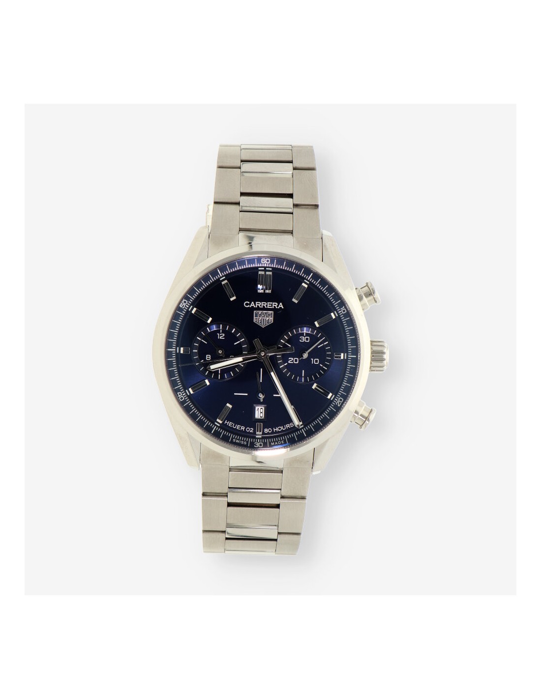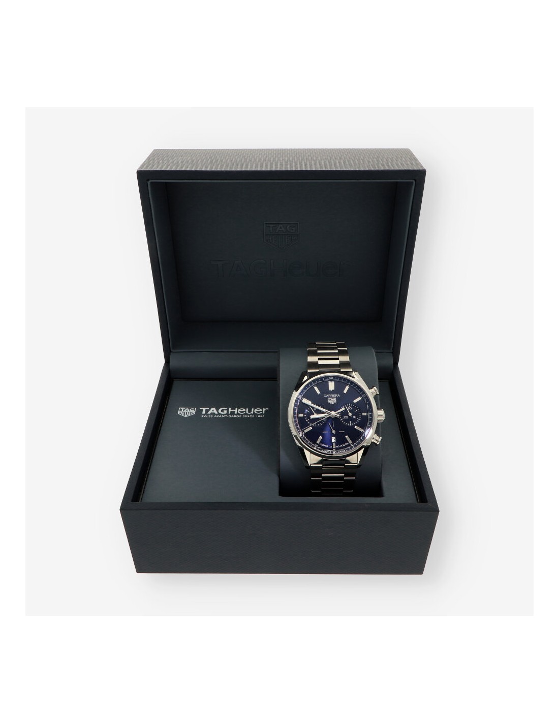 Excelente TAG HEUER Carrera del calibre Heuer 02 segunda mano en perfecto estado de marcha y conservación. Cuerda automática con una reserva de marchas de 80h. Caja en acero 42mm con cristal zafiro fondo en azul y sin cifras.. Resistencia al agua de 10 atmosferas con bisel en acero. Correa y cierre en acero. incluye caja y documentación.