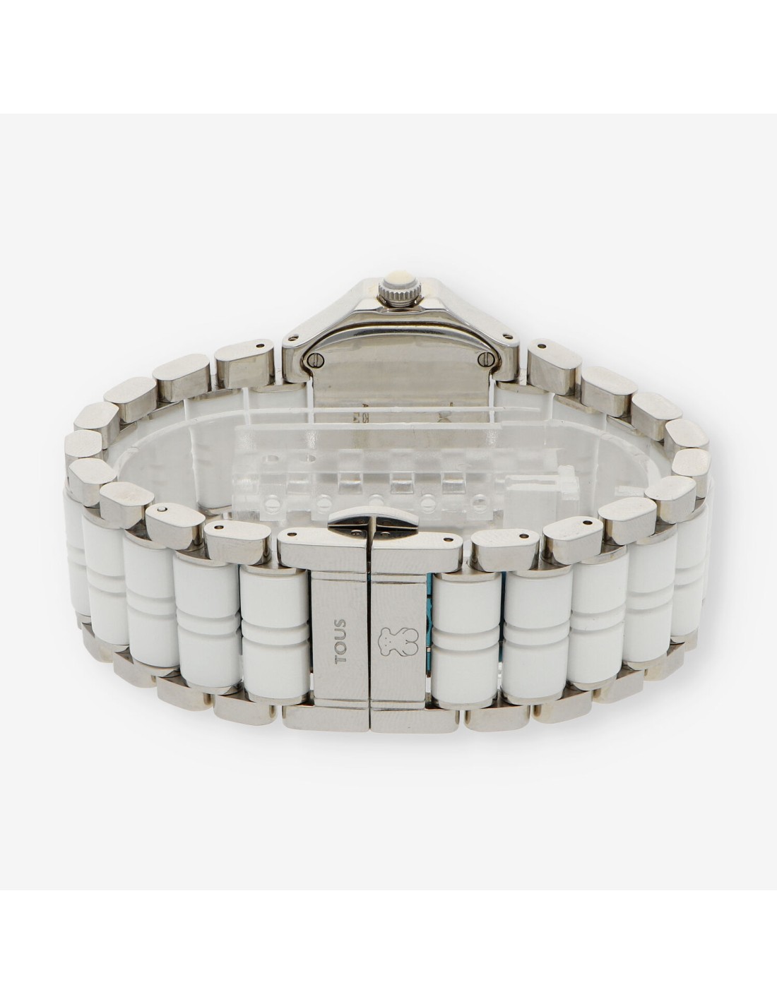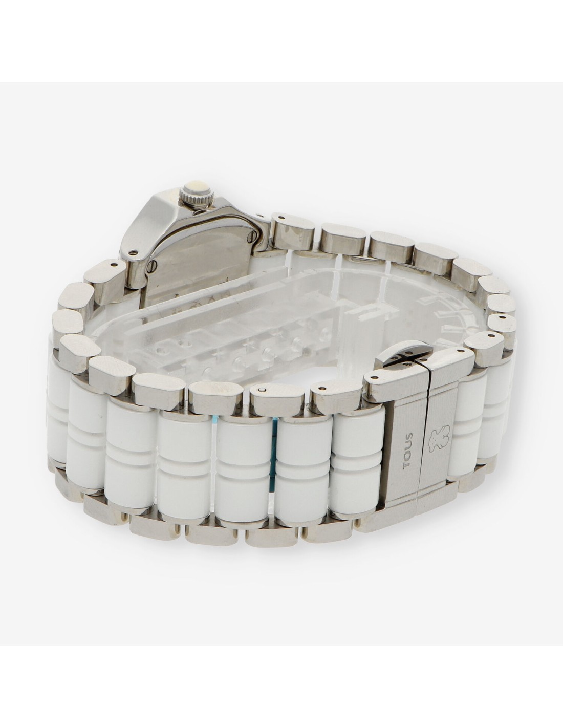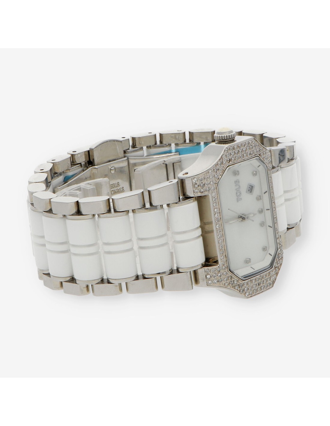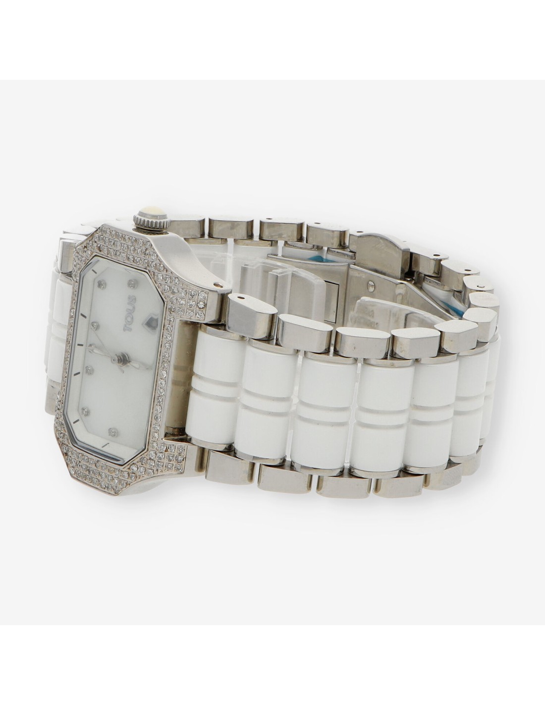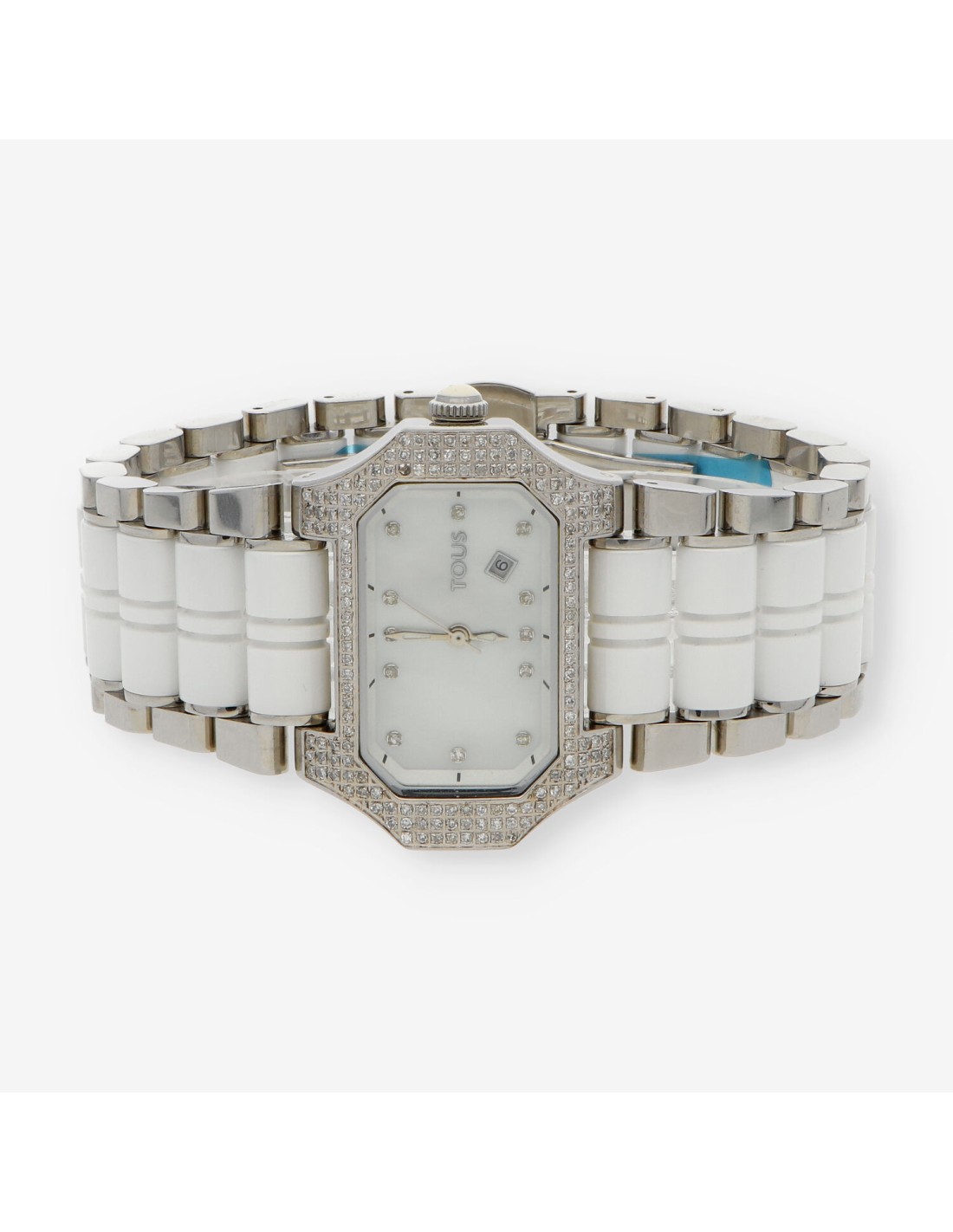 Preciosos reloj Tous en acero con brillantes con un perfecto estado de marcha y conservacion correa combinada en acero y cerámico diámetro de caja 20x35mm, cierre plegable y movimiento de cuarzo.