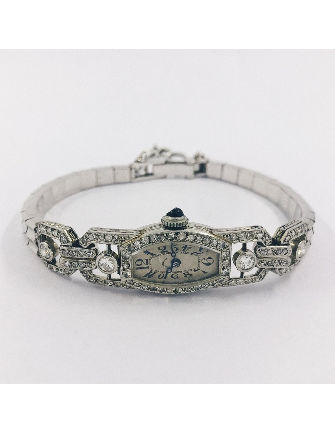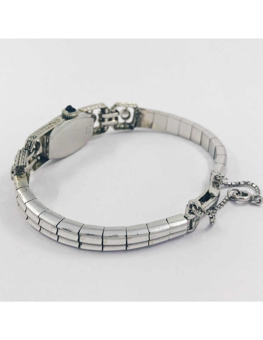Magnifico reloj vintage de segunda mano en perfecto estado de marcha y conservación. De cuerda manual con caja de 16mm, con cristal plexiglas fondo gris con número árabes y brillantes en la parte frontal.