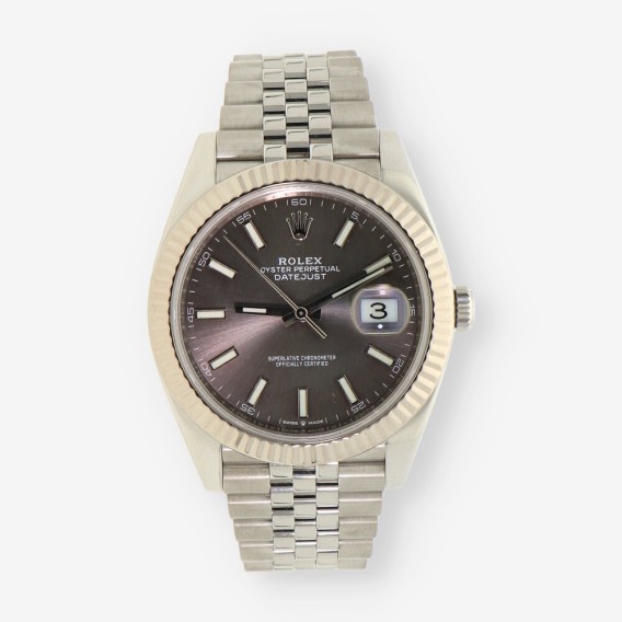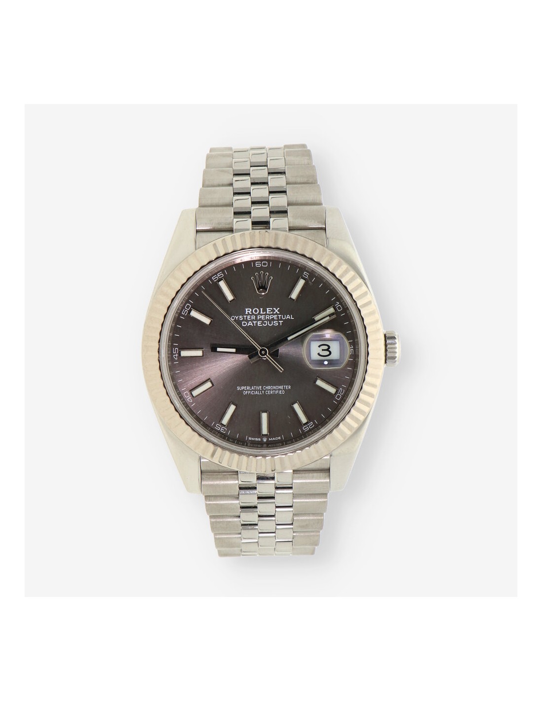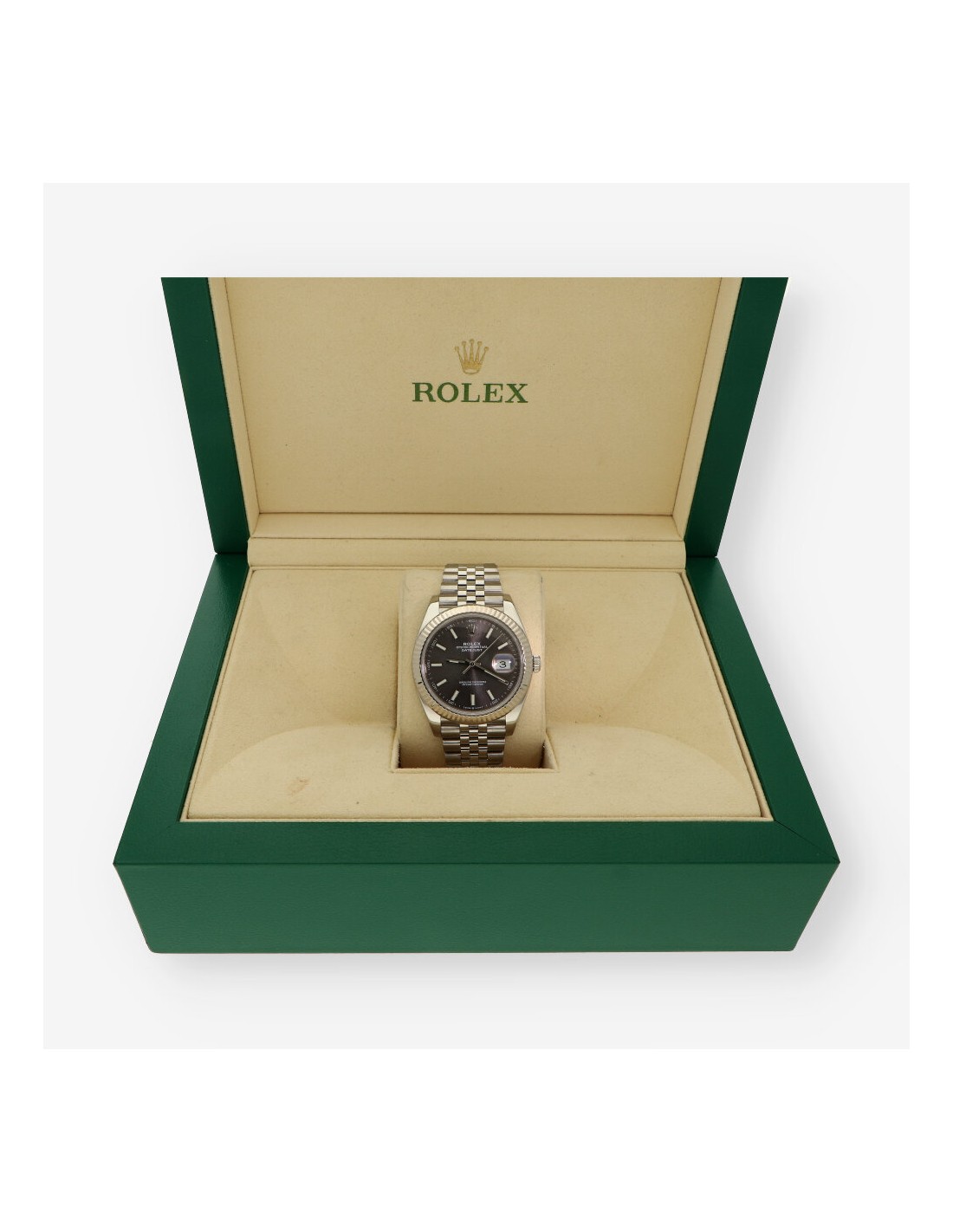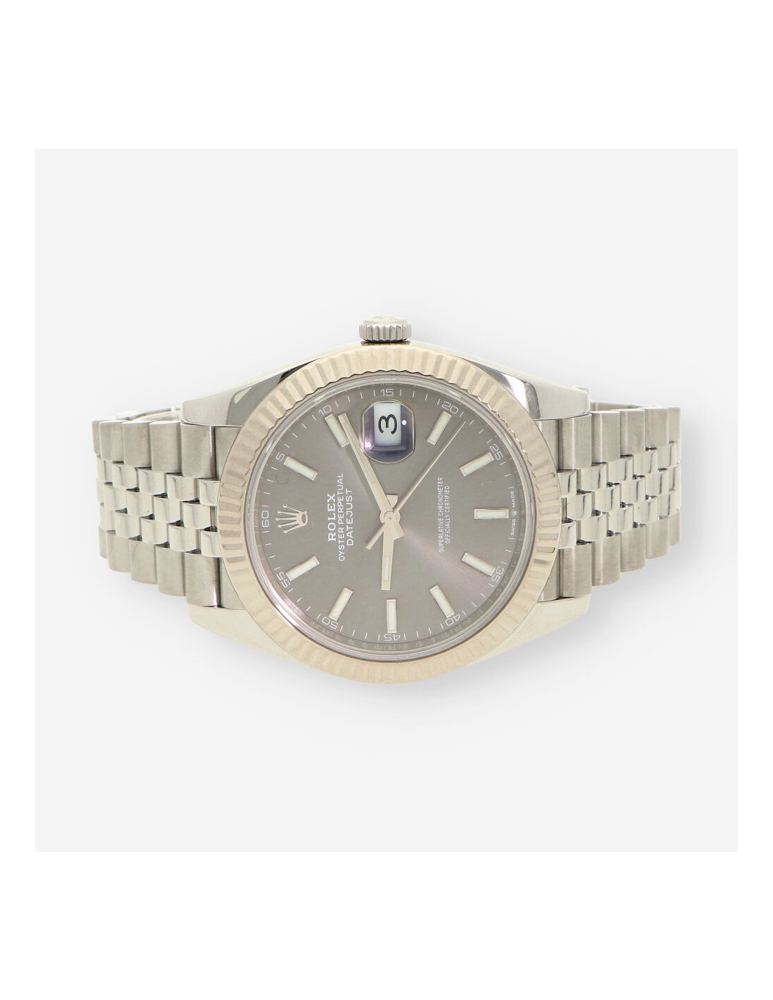 Magnifico Rolex Datejust. Ref: 126334, movimiento automático del calibre 3235. con una reserva de marcha de 70h y 31 joyas en su interior. Caja en acero 41mm resistencia al agua 10ATM, cristal zafiro, esfera gris sin números y bisel en oro blanco. Correa en acero y cierre de broche plegable en acero. Incluye caja original.