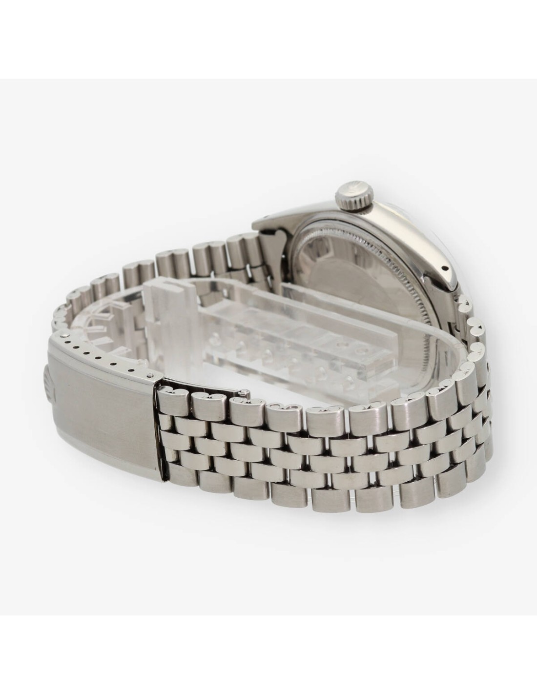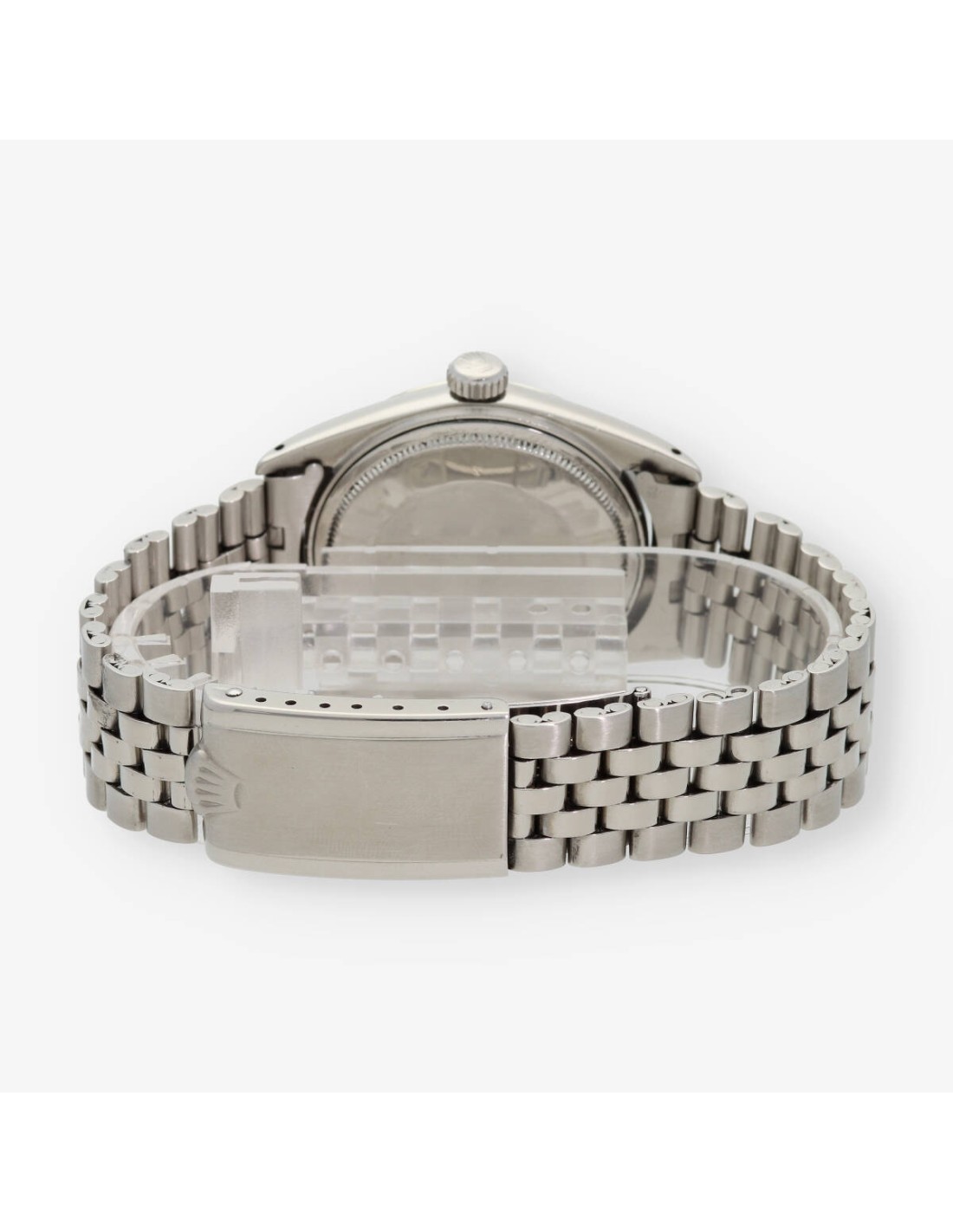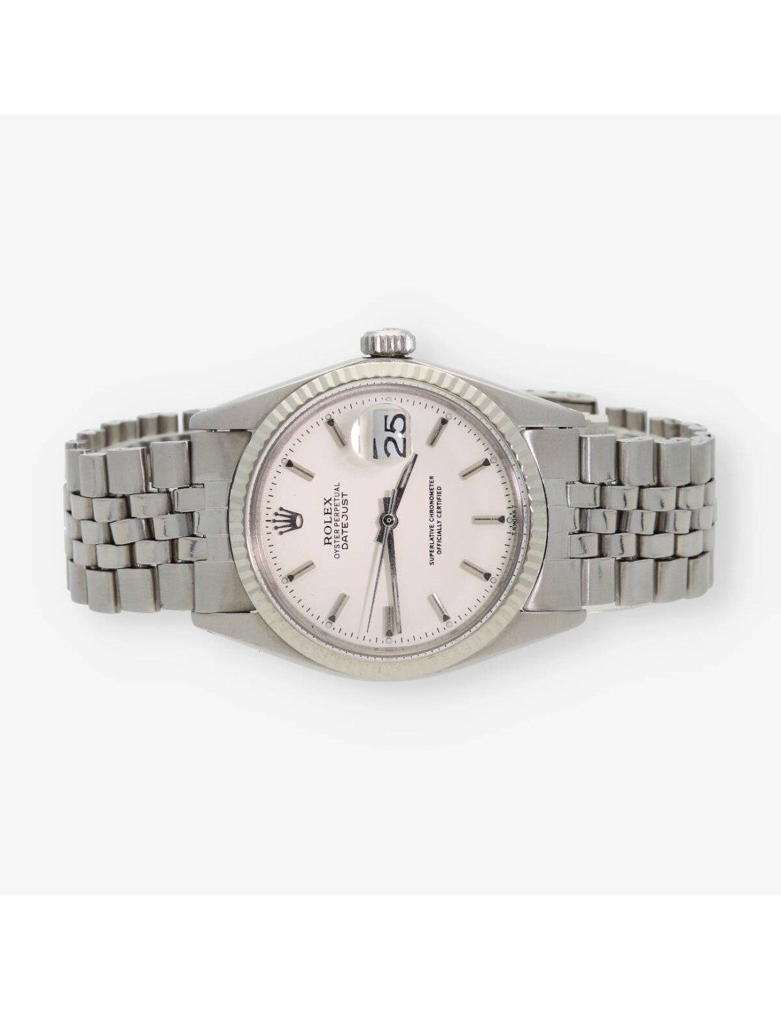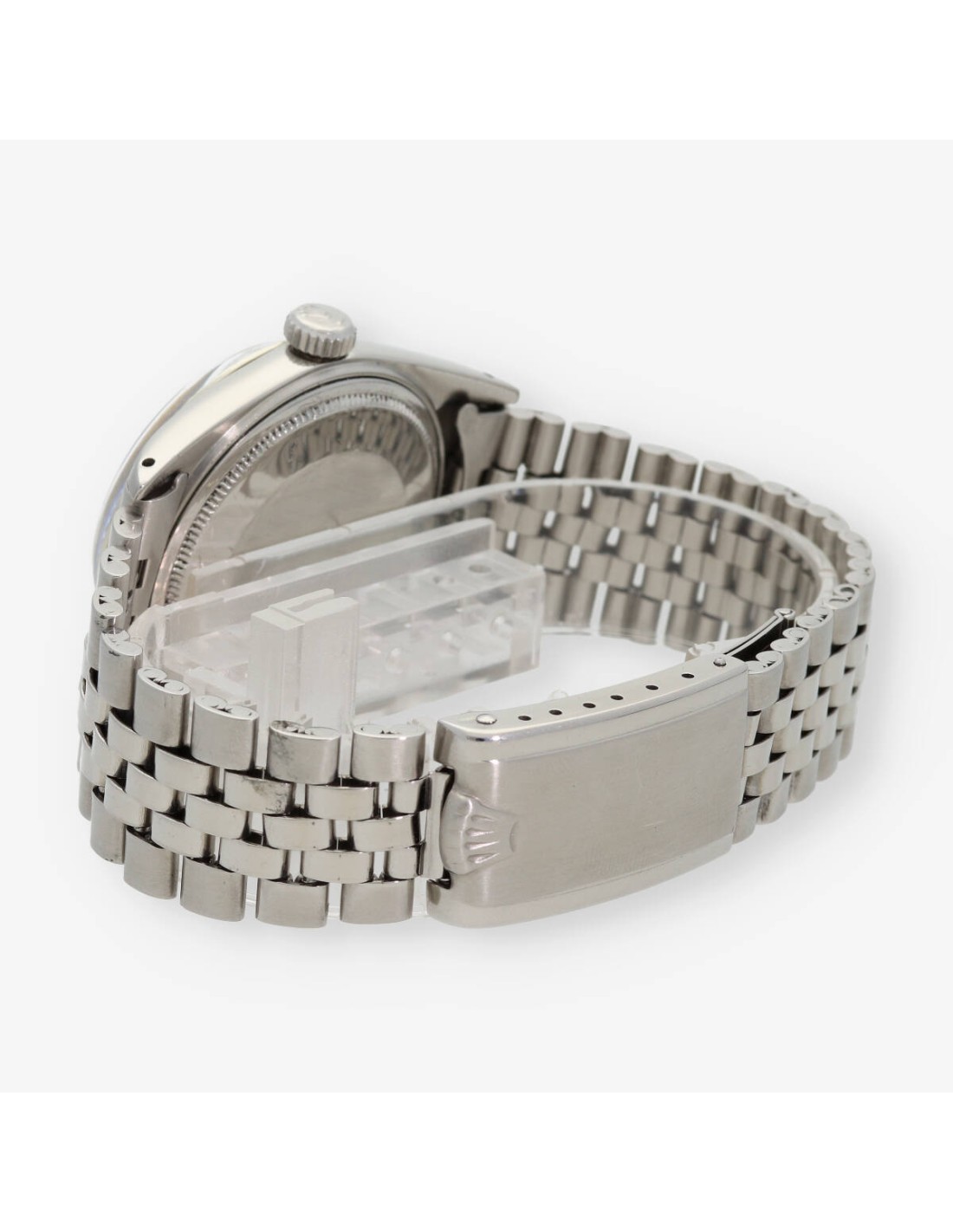 Magnifico Rolex Datejust de segunda mano en perfecto estado de marcha y conservacion. Ref: 1601, cuerda automática del calibre 1570 con una reserva de marcha de 48h. Caja en acero 36mm, cristal plexiglas, esfera blanca con sin números. Correa en acero y cierre de broche plegable en acero. Año 1970 (aprox).