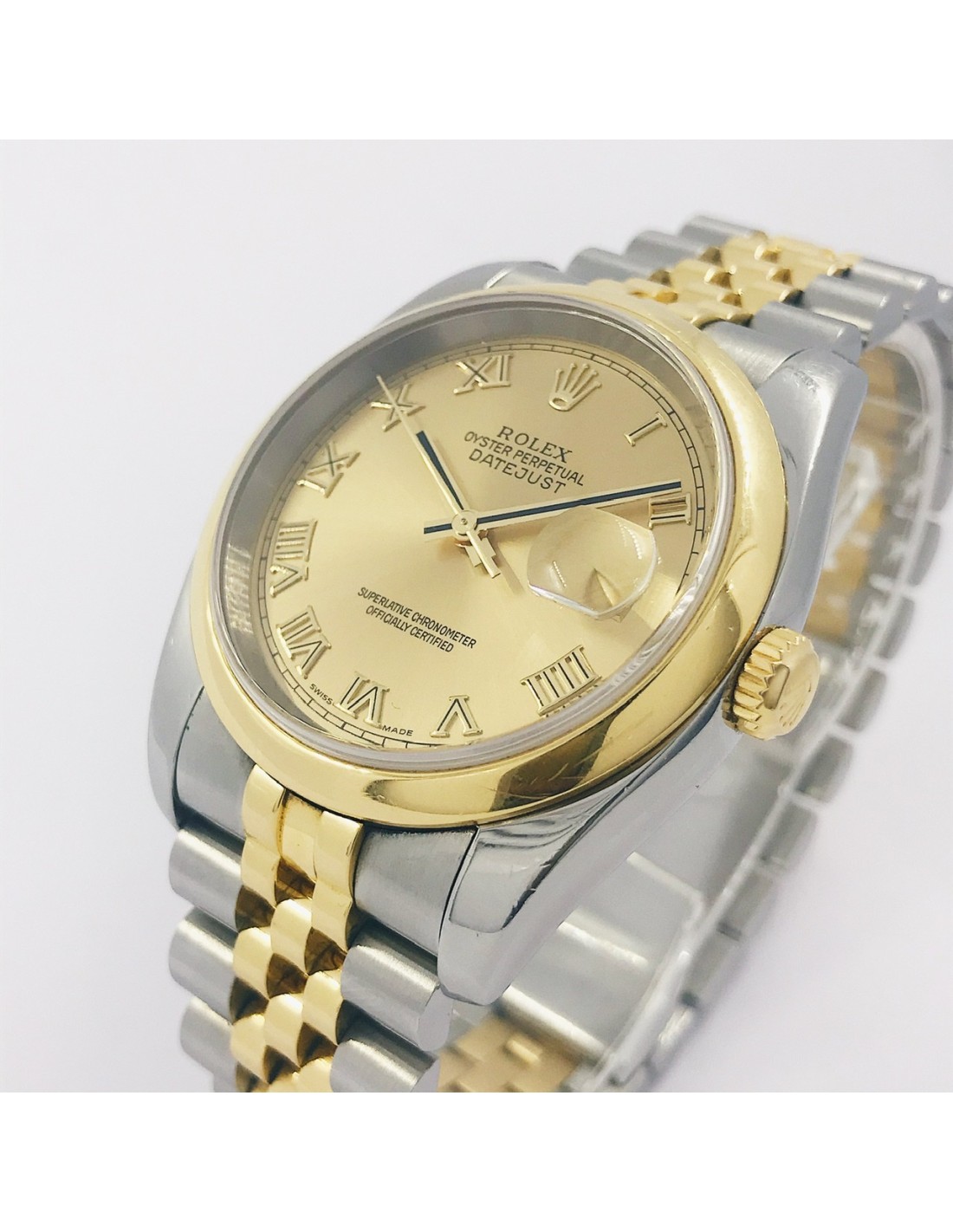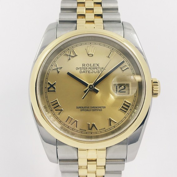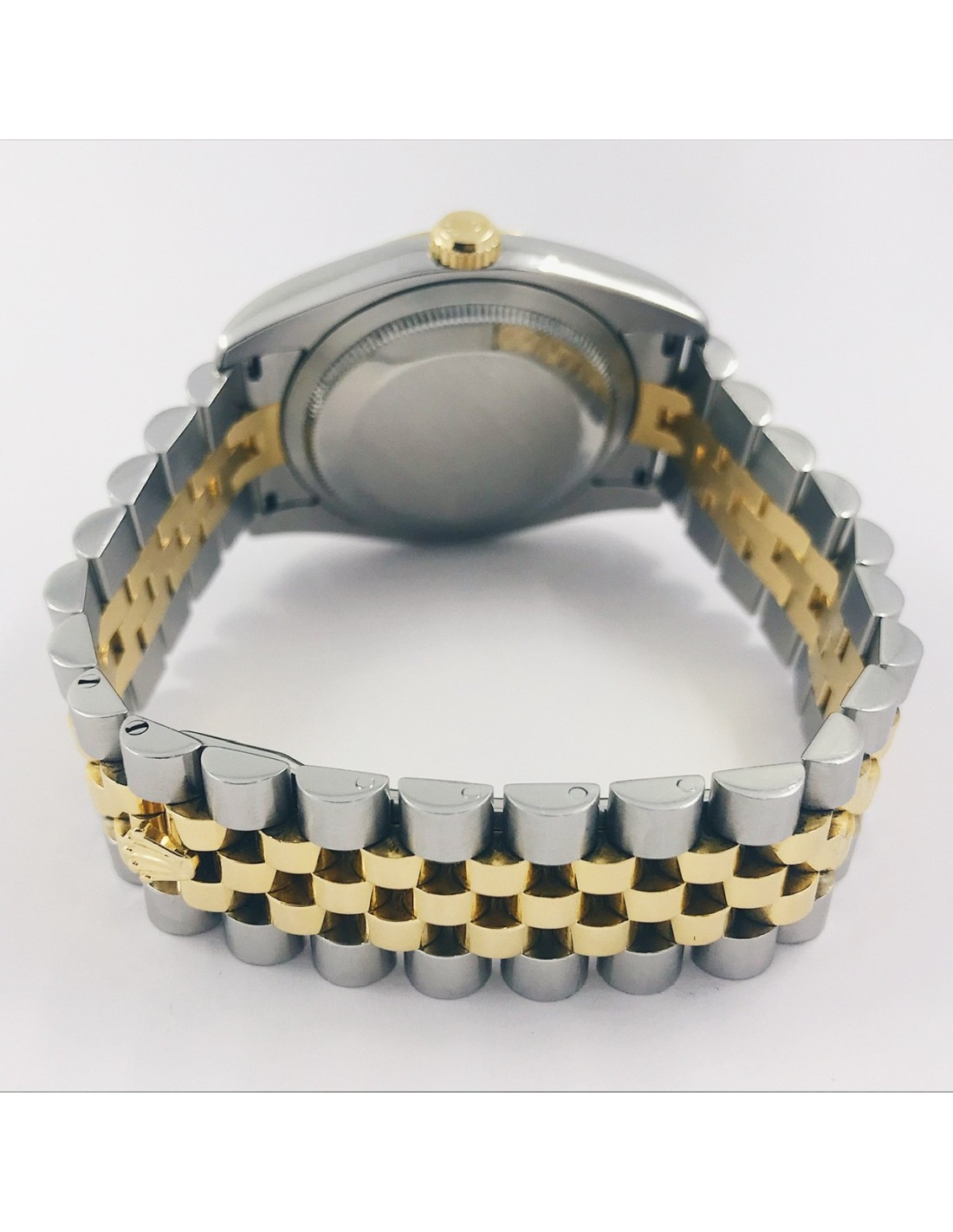 Magnífico Rolex Datejust mixto de segunda mano en perfecto estado de marcha y conservación. Incluye caga original, Ref:116203. Cuerda automática del calibre 3135 con una reserva de marchas de 48h. Caja en acero y oro 36mm bisel en oro amarillo con cristal zafiro, fondo chanpan y números romanos. Resistencia al agua de 10 atmósferas. Correa jubilee en acero y oro y cierre de broche plegable en acero y oro. Del año 2004 aprox. Revisión realizada en 2015 (incluye tarjeta de revisión).