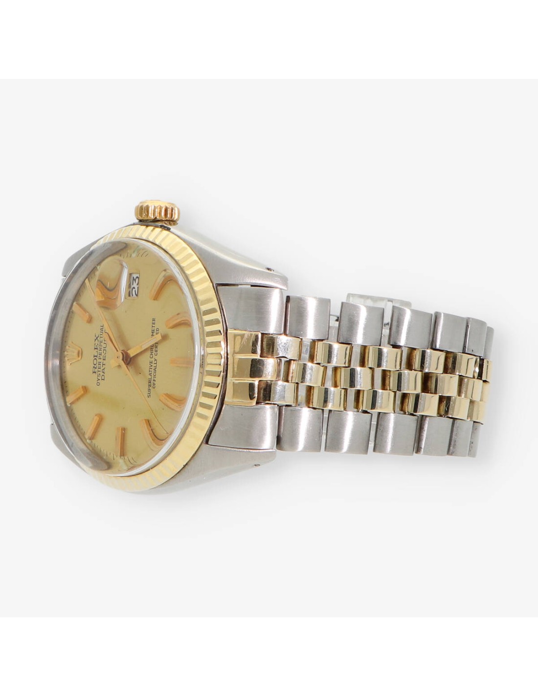 Magnifico Rolex mixto de segunda mano en perfecto estado de marcha y conservación. Ref:1601. Cuerda automática del calibre 1570 con una reserva de marchas de 40h. Caja en acero y oro 36mm con plexiglas, fondo, fondo blanco y números romanos. Resistencia al agua de 10 atmósferas. Correa en acero y oro y cierre de broche plegable en acero.