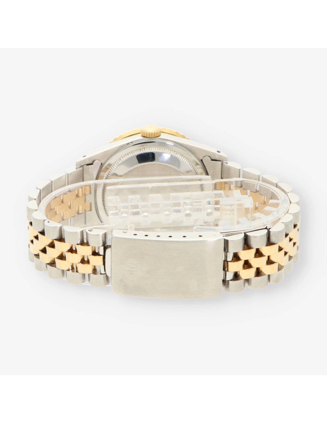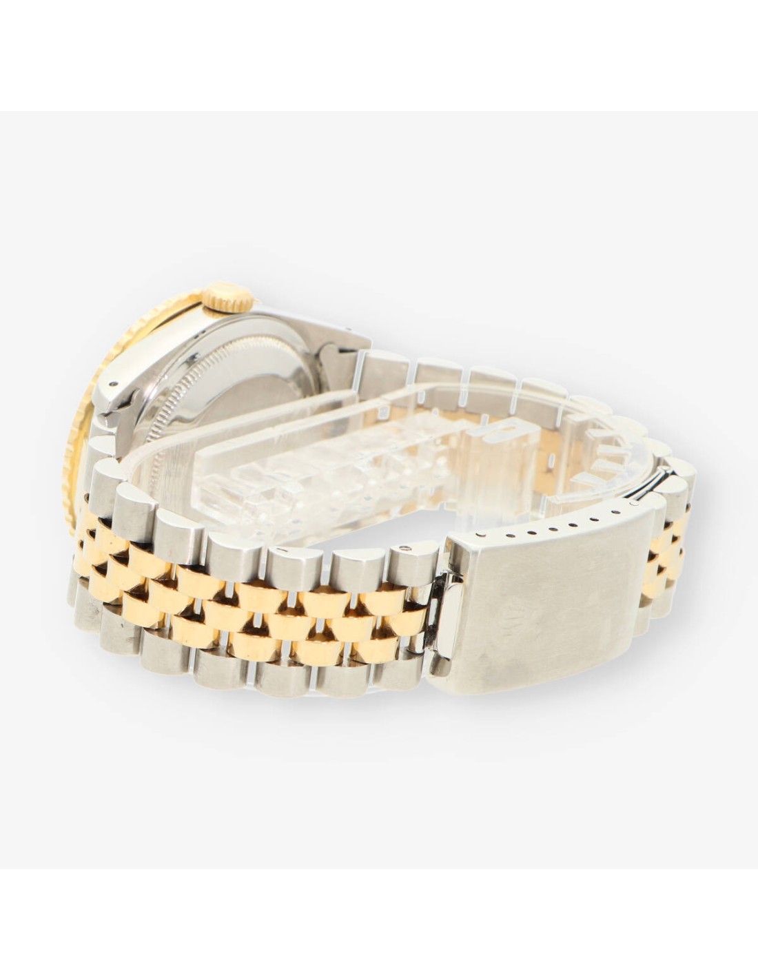 Magnifico Rolex mixto de segunda mano en perfecto estado de marcha y conservación. Ref:16263. Cuerda automática del calibre 3135 con una reserva de marchas de 48h. Caja en acero y oro 36mm con cristal zafiro, fondo, fondo blanco y números arábigos. Correa en acero y oro y cierre de broche plegable en acero. Año 1991