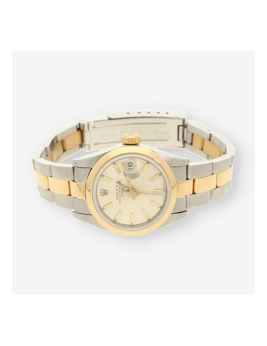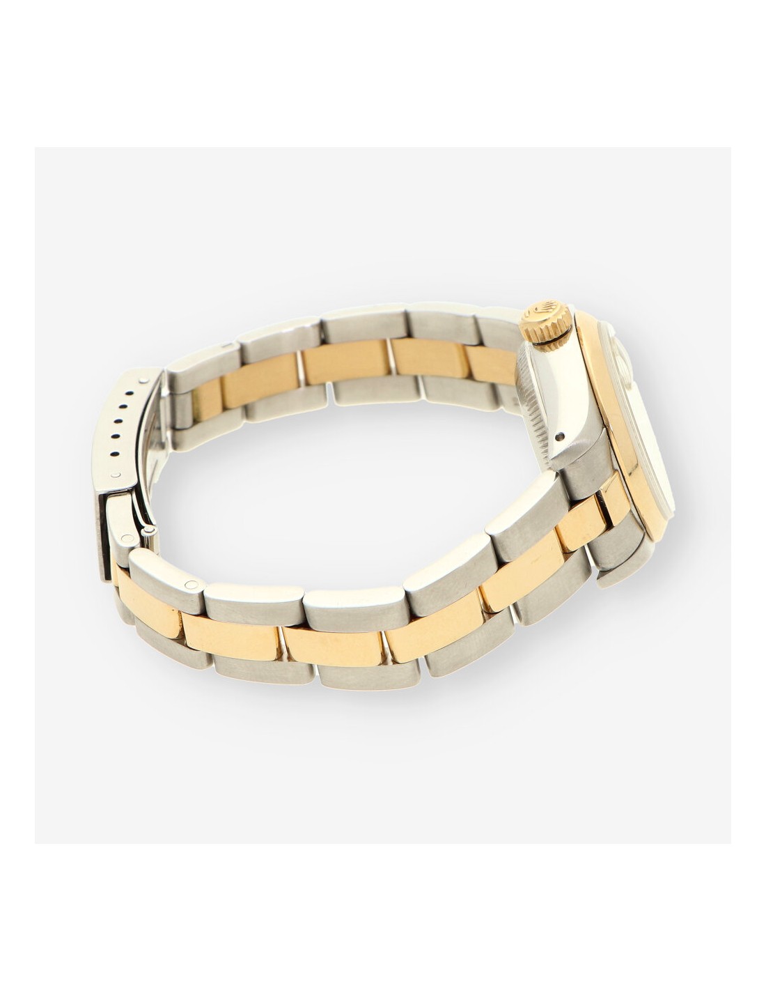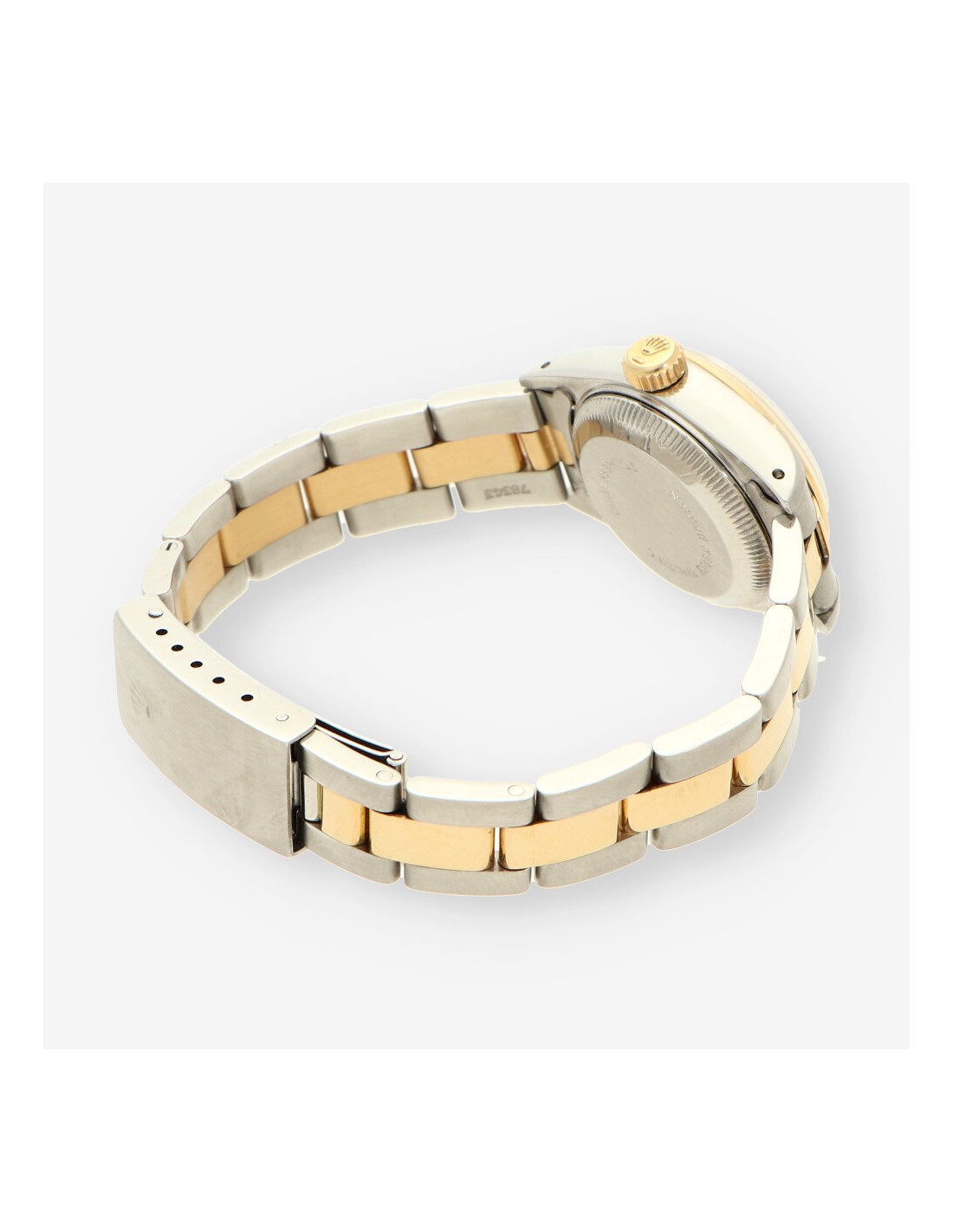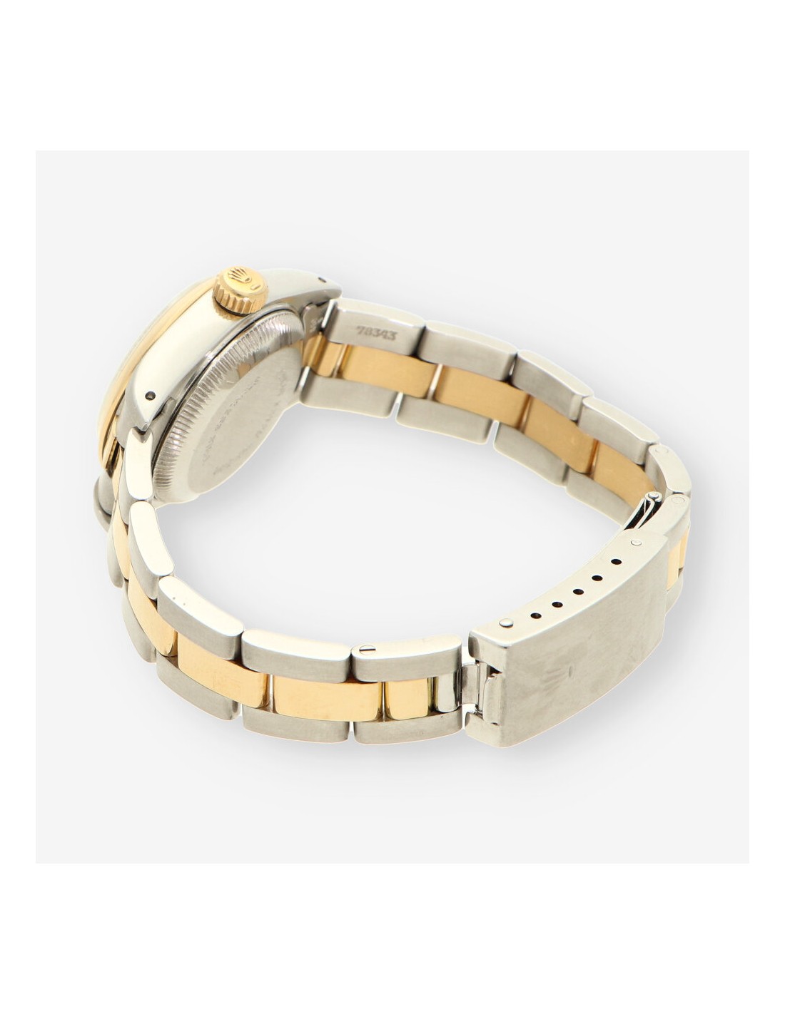 Presentamos este fabuloso rolex Lady Datejust de segunda mano en perfecto estado de marcha y conservación con referencia: 69163. Cuerda automática. Caja de 26mm en acero y oro cristal zafiro fondo plateado sin números. Correa en acero y oro con cierre de broche plegable en acero.