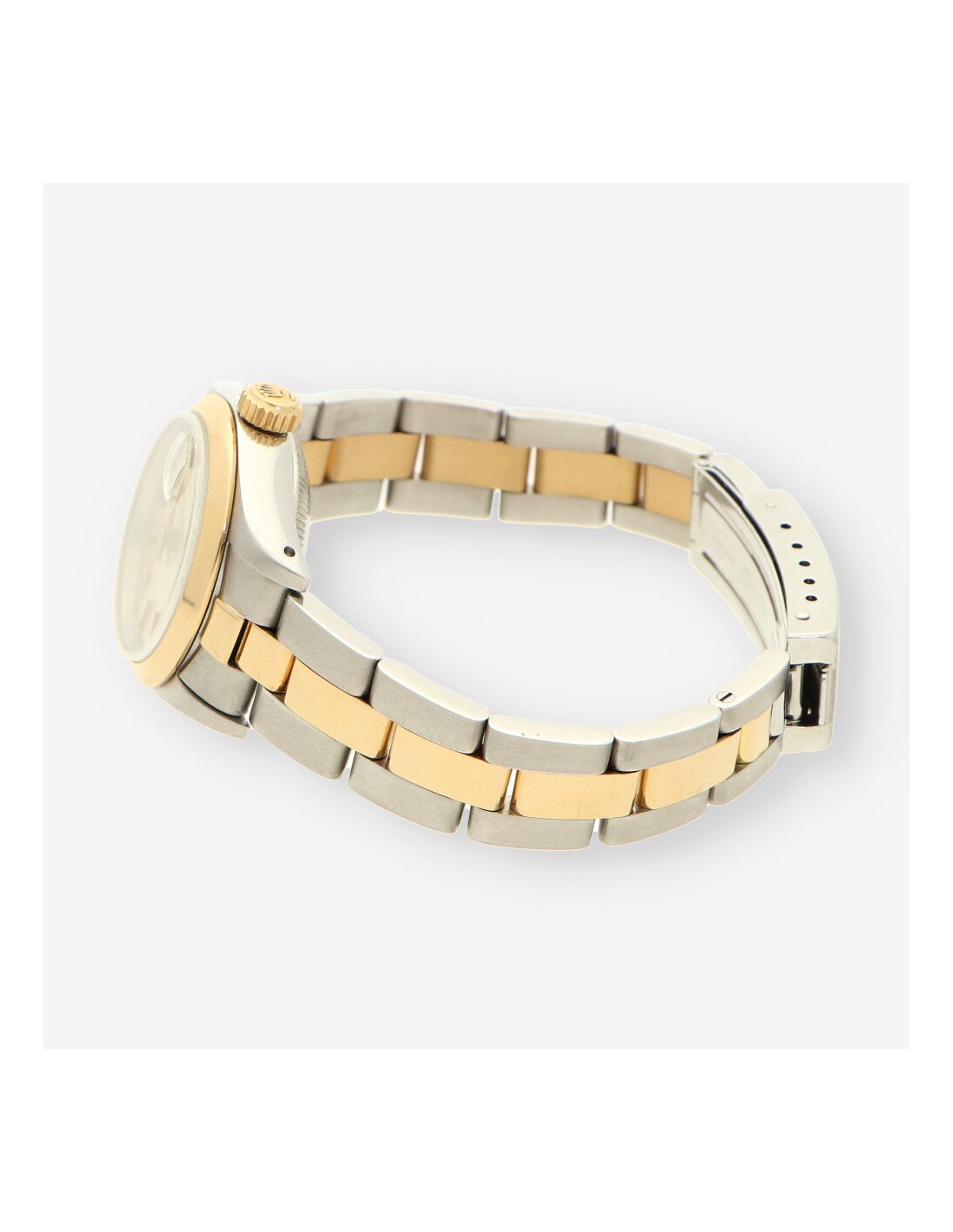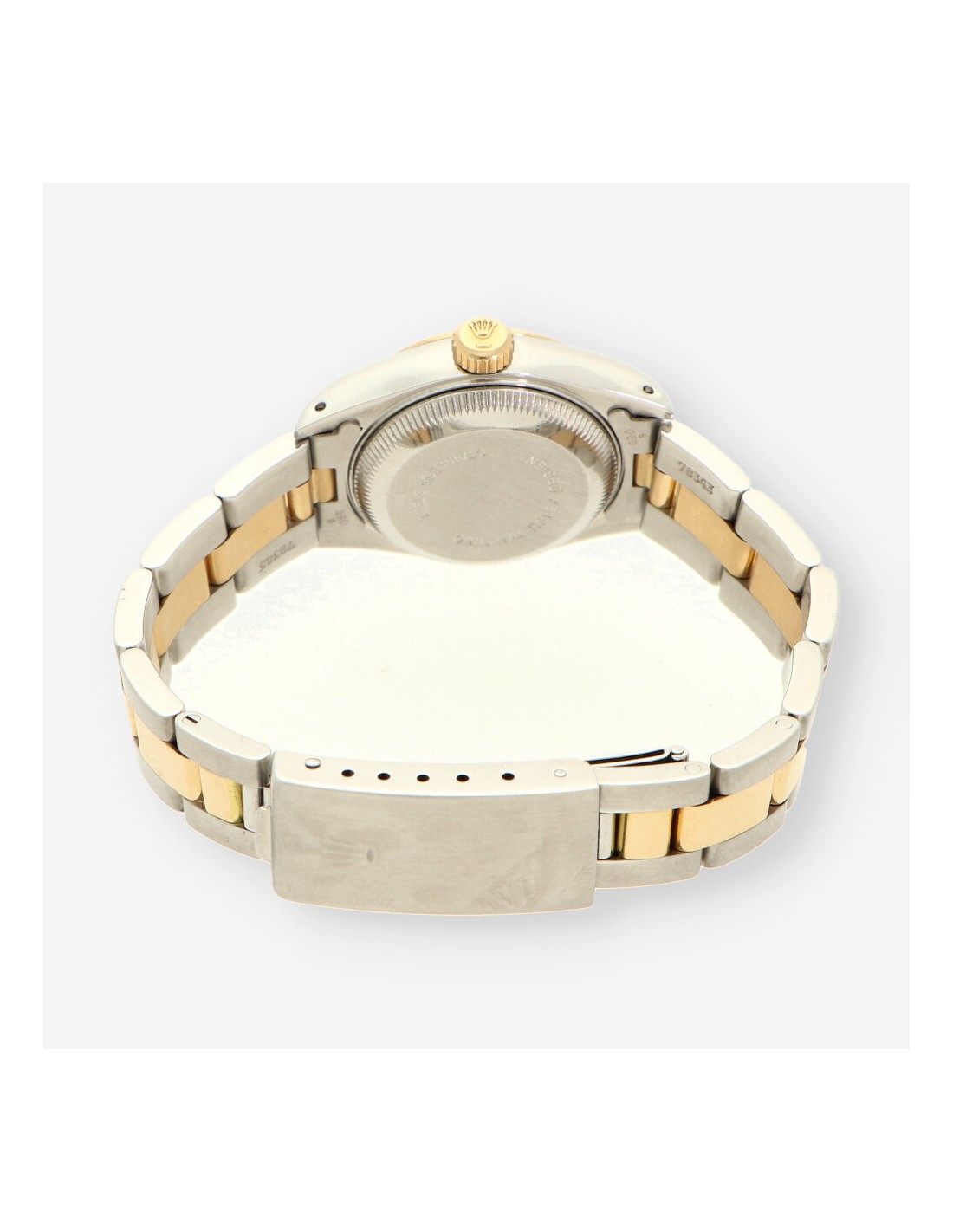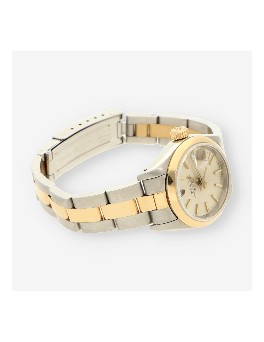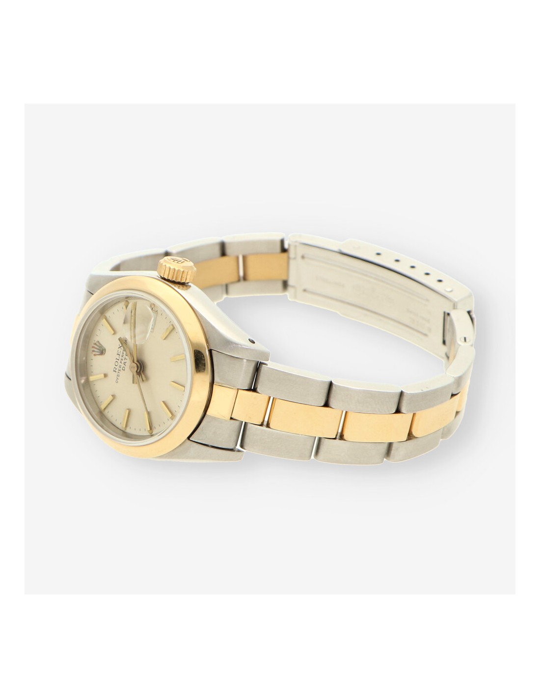 Presentamos este fabuloso rolex Lady Datejust de segunda mano en perfecto estado de marcha y conservación con referencia: 69163. Cuerda automática. Caja de 26mm en acero y oro cristal zafiro fondo plateado sin números. Correa en acero y oro con cierre de broche plegable en acero.