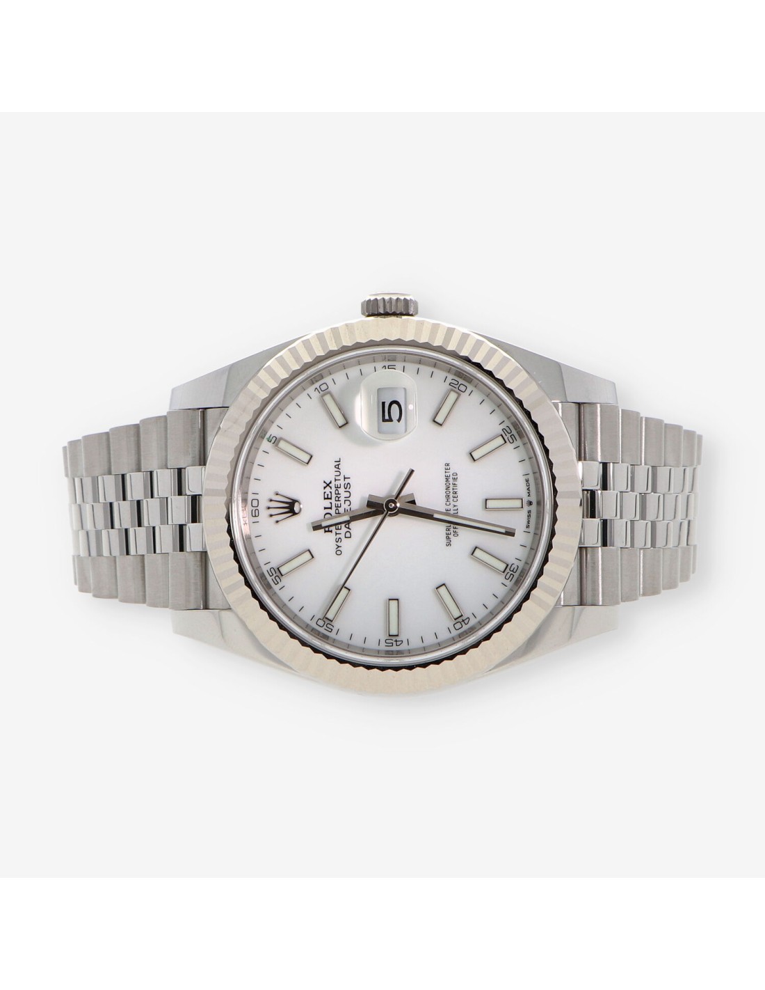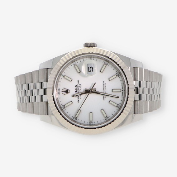 Magnifico Rolex Datejust nuevo. Ref: 126334, cuerda automática. con una reserva de marcha de 70h y 31 joyas en su interior. Caja en acero 41mm resistencia al agua 10ATM, cristal zafiro, esfera blanca sin números y bisel en oro. Correa en acero y cierre de broche plegable en acero. Año 2021.