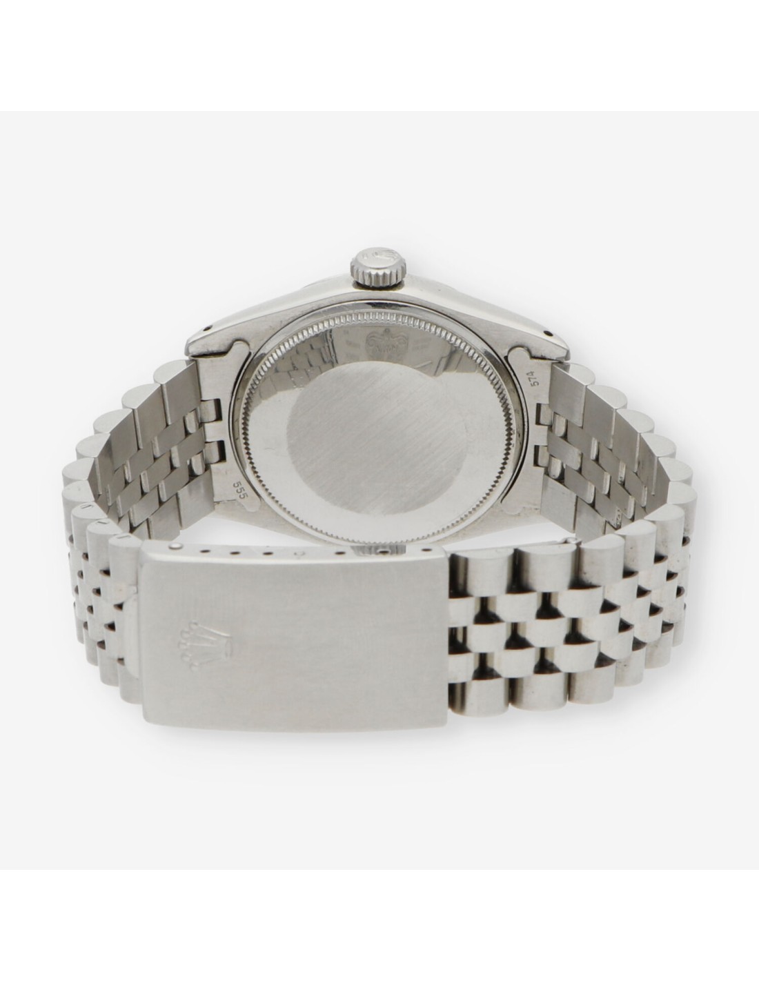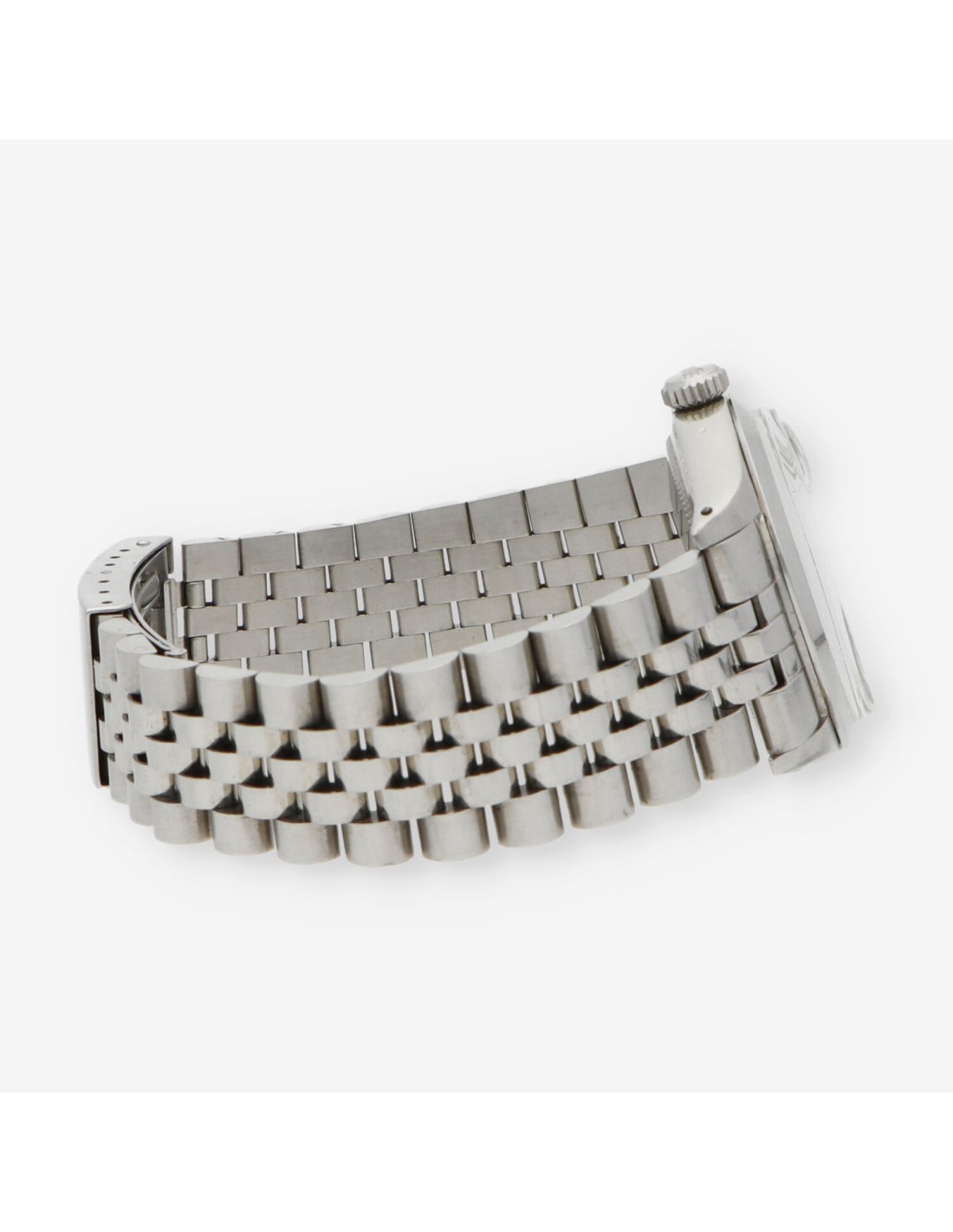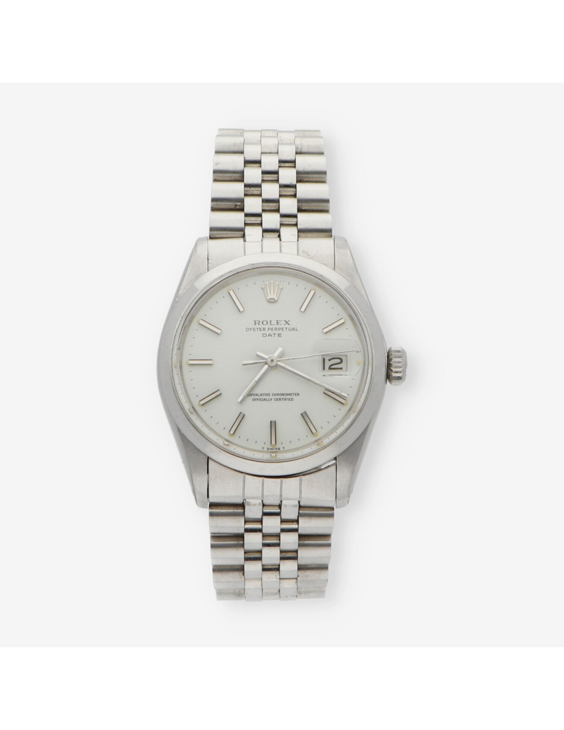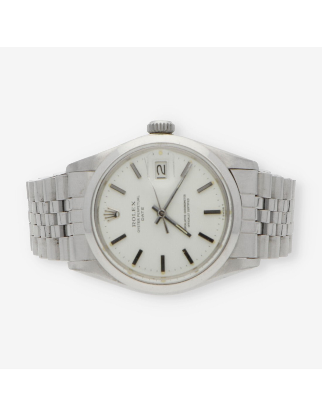Magnifico Rolex Oyster Perpetual Date de segunda mano en perfecto estado de marcha y conservacion. Ref: 1500, cuerda automática del calibre 3035 con una reserva de marcha de 48h y 27 joyas en su interior. Caja en acero 34mm resistencia al agua 10ATM, cristal zafiro, esfera blanca sin números. Correa en acero y cierre de broche plegable en acero. Año 1972 (aprox).