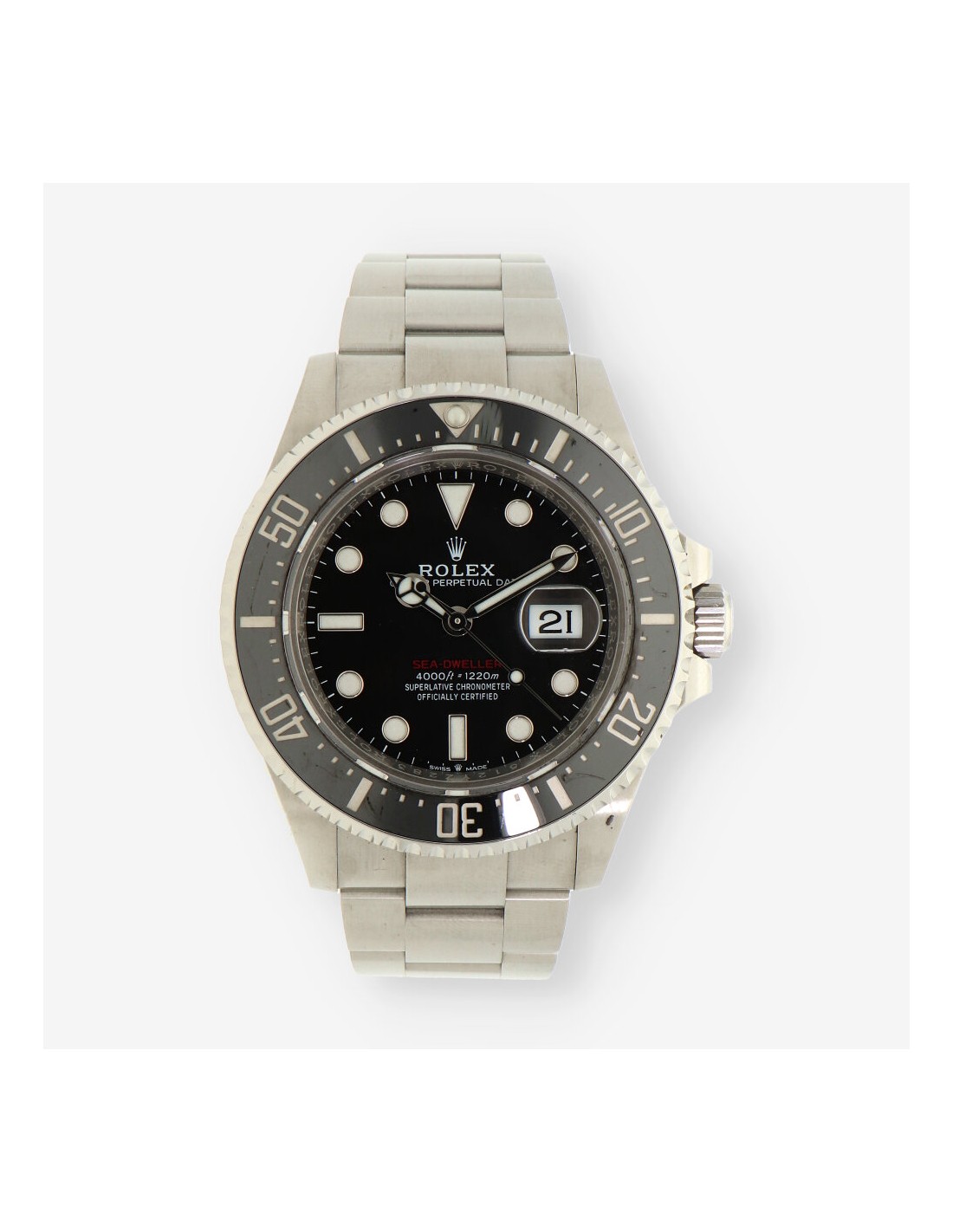 Magnífico Rolex Sea-Dweller date de segunda mano en perfecto estado de marcha y conservación. Ref: 126600 del año 2023, con cuerda automática del calibre 3235. Caja de 43mm en acero con cristal zafiro, fondo negro sin cifras, con una reserva de marcha de 70 horas y resistencia al agua de 120 atmósferas. Correa y cierre en acero. Incluye caja y documentos