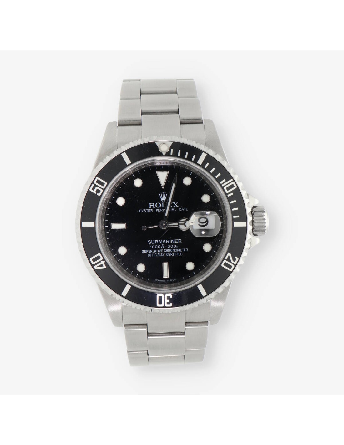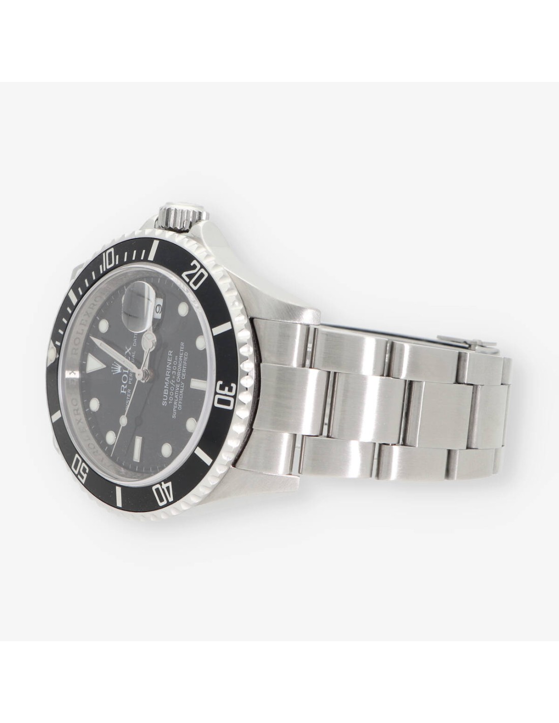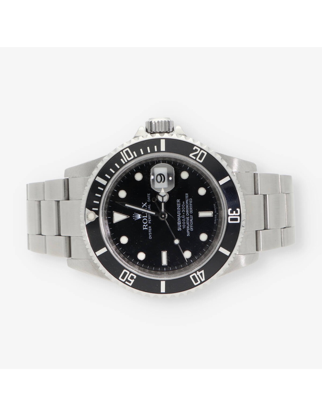 Magnífico Rolex Submariner de segunda mano en perfecto estado de marcha y conservación. Ref: 16610T de año 2007 aprox. con cuerda automática del calibre 3135. Caja de 40mm en acero con cristal zafiro, fondo negro sin cifras, con una reserva de marcha de 48 horas y resistencia al agua de 30 atmósferas. Correa y cierre en acero.