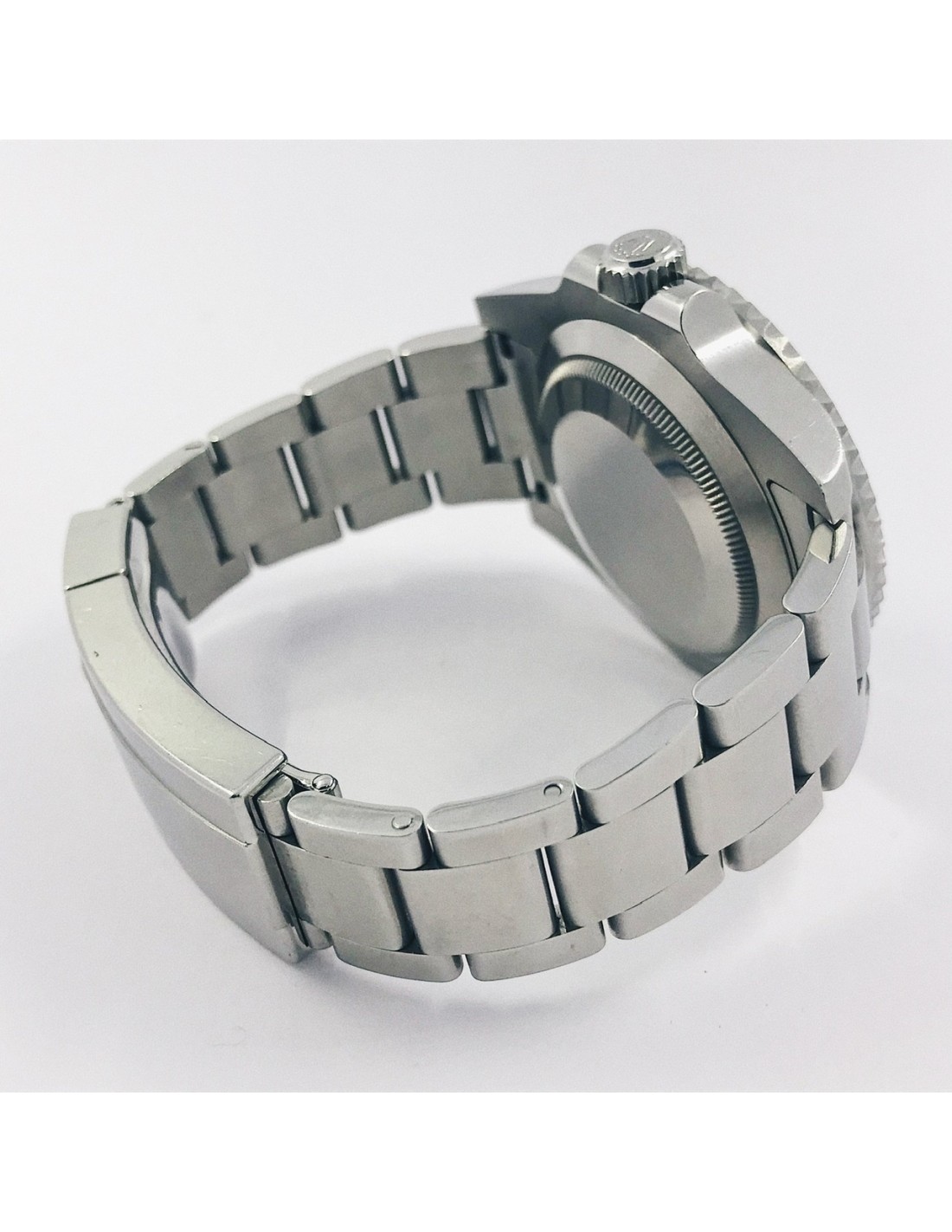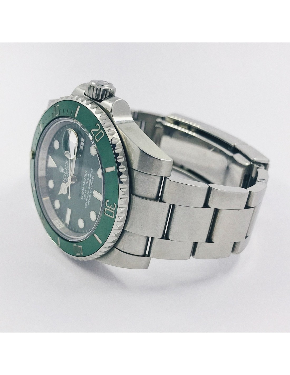 Magnifico Rolex Submariner de segunda mano en perfecto estado de marcha y conservación con caja y documentación. Cuerda automática del calibre 3135 y una reserva de marchas de 48h. Caja en acero con 40mm, cristal zafiro, fondo verde sin cifras, bisel cerámico y una resistencia al agua de 30 atmósferas. Correa oyster en acero y cierre desplegable en acero. Del año 2012.