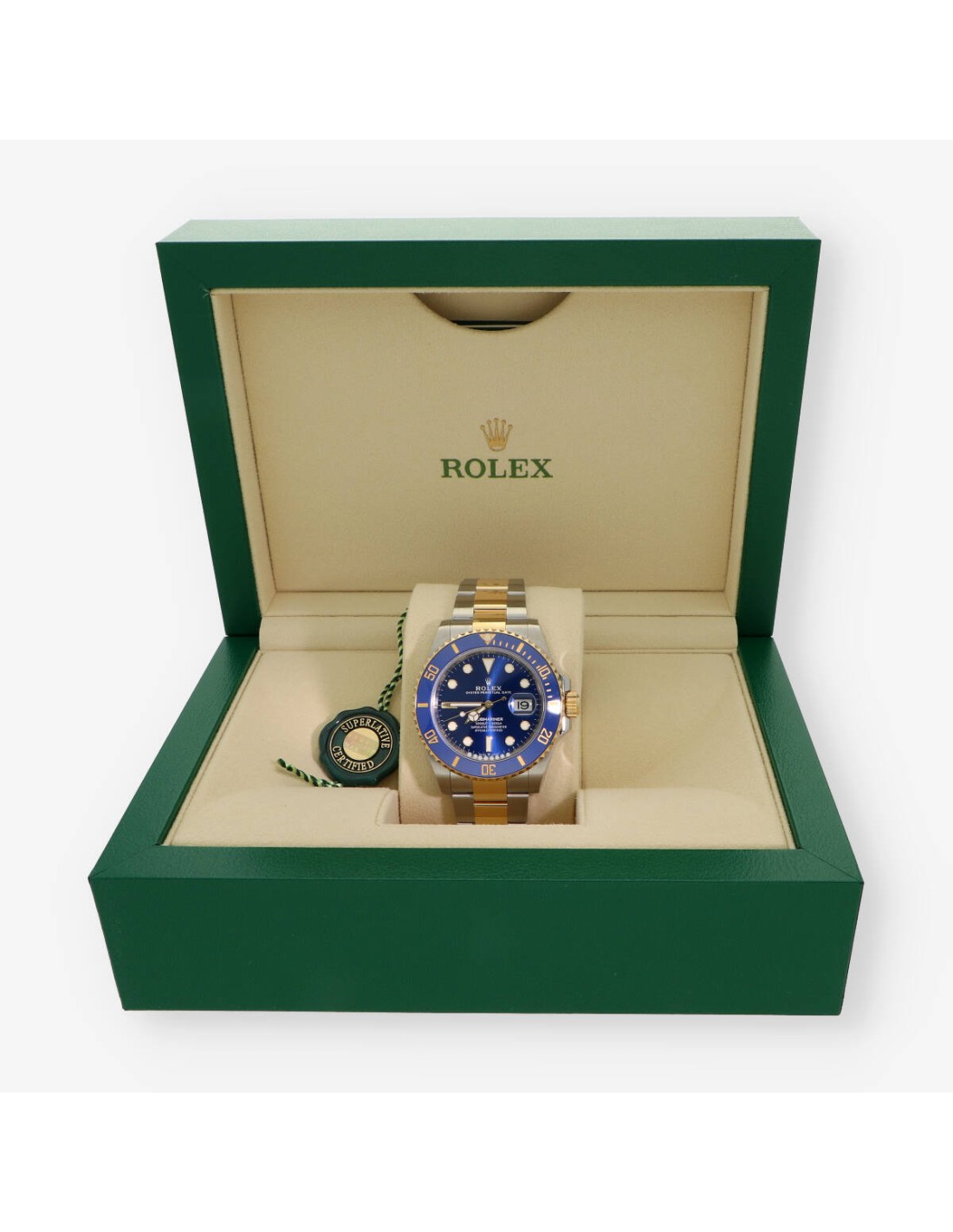 Magnífico rolex Submariner mixto Nuevo a estrenar. Del año 2022 Ref: 126613LB, con movimiento automático del calibre 3235. Caja de 41mm en acero y oro con cristal zafiro, fondo azul sin cifras, con una reserva de marcha de 70 horas y resistencia al agua de 30 atmósferas. Correa y cierre en acero y oro. Incluye caja y documentos originales.