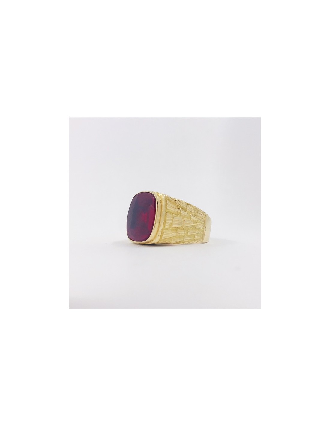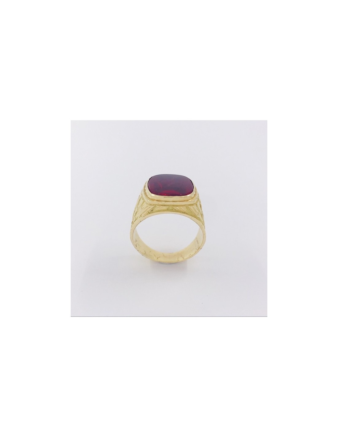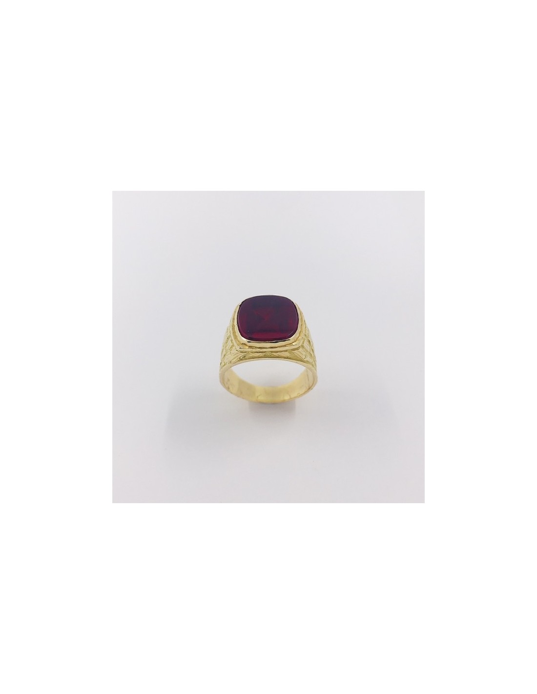 Precioso sello de segunda mano en oro amarillo de primera ley con piedra roja central. Un diseño clásico e infalible, ideal para los amantes de sellos. Talla: 19. Peso: 10,9gr.