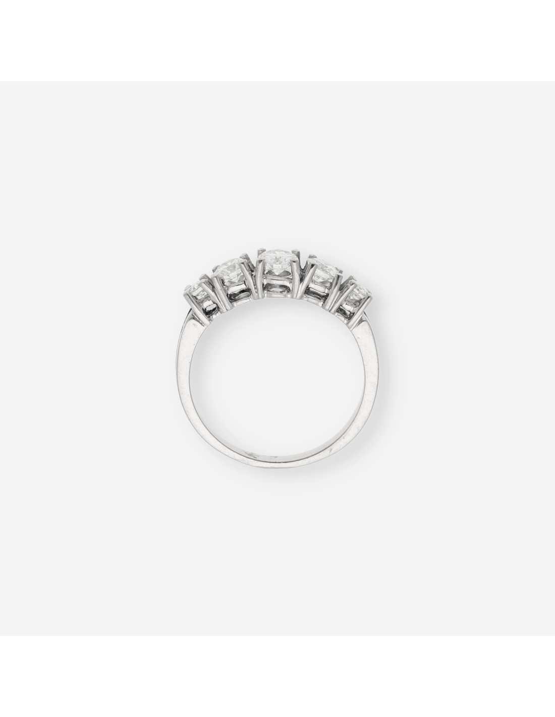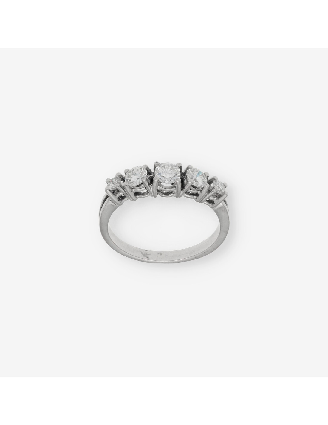 Magnifico anillo de segunda mano en oro blanco de primera ley con preciosos brillante en la parte central. Una pieza para impresionar. Talla: 14. Peso: 3.4gr.