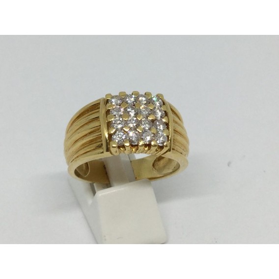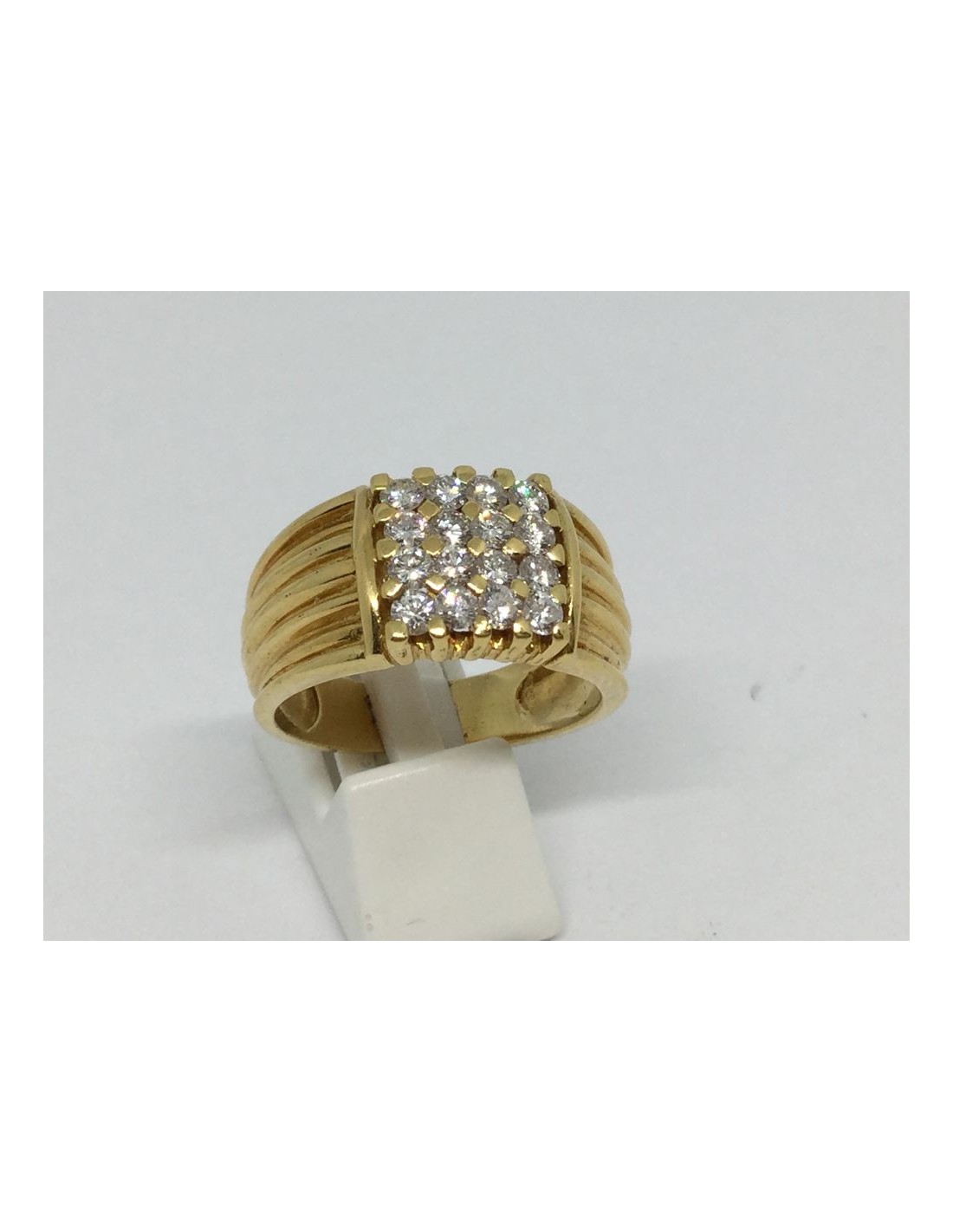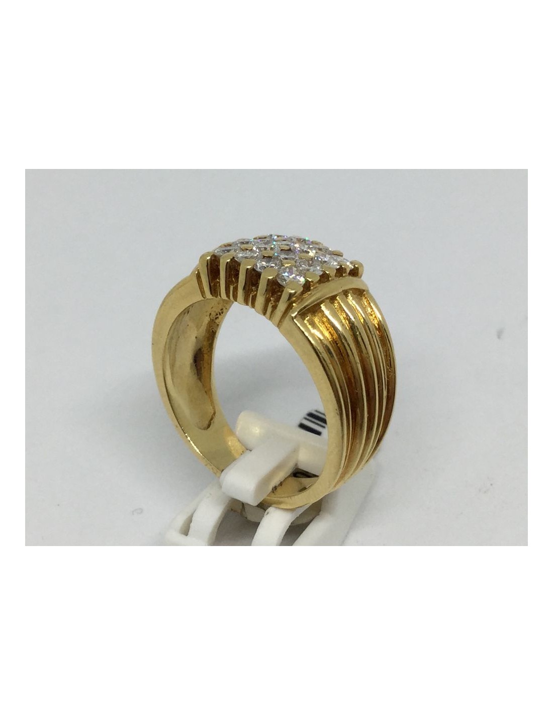Sortija de ocasión en oro amarillo de 18 kt. con centro de brillantes. Talla: 12. Peso: 6,7 gr.