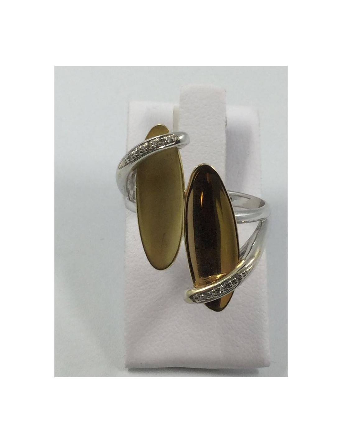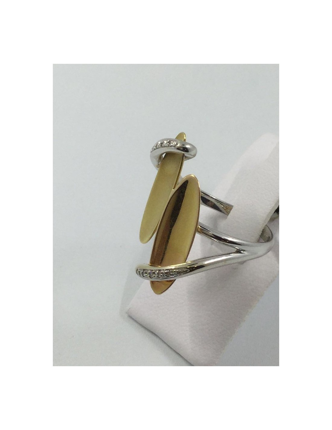 Anillo en oro blanco, amarillo y brillantes