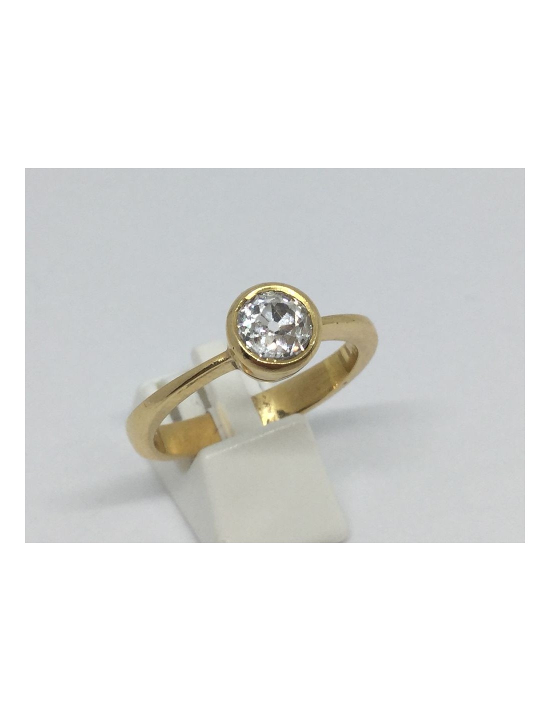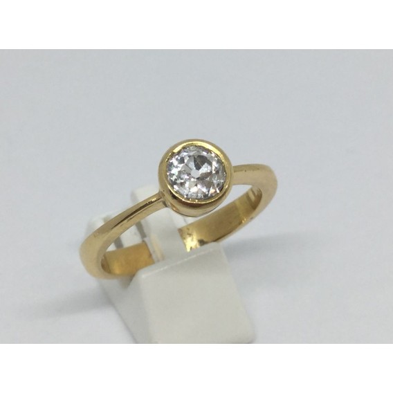 Sortija solitario de ocasión en oro amarillo de 18 kt y brillante central de 0,50 qt. aprox. engastado en chatón. Talla: 15. Peso: 3,8 gr.