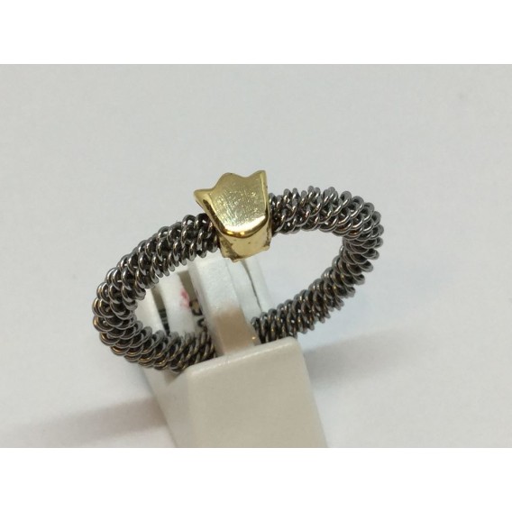 Sortija Tous de ocasión en malla de acero y centro de tulipán en oro de 18 kt. Talla: 12. Peso: 2,1 gr.