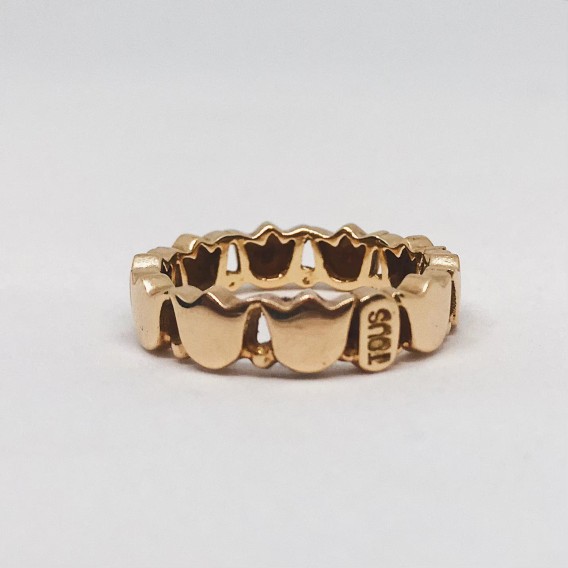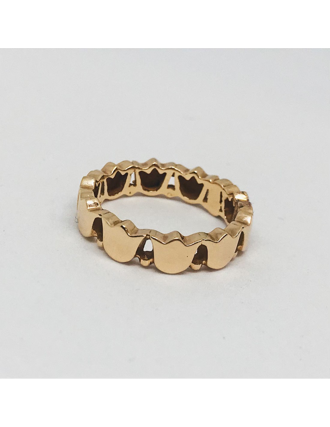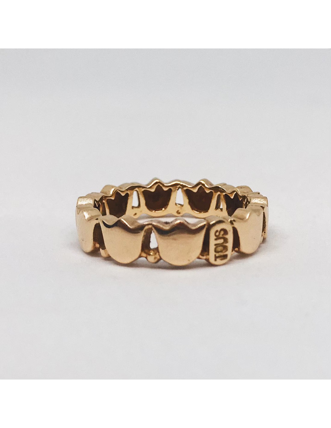 Sortija Tous de ocasión en oro rosa de 18 kt. con motivo de tulipanes. Talla: 14. Peso: 4,8 gr.